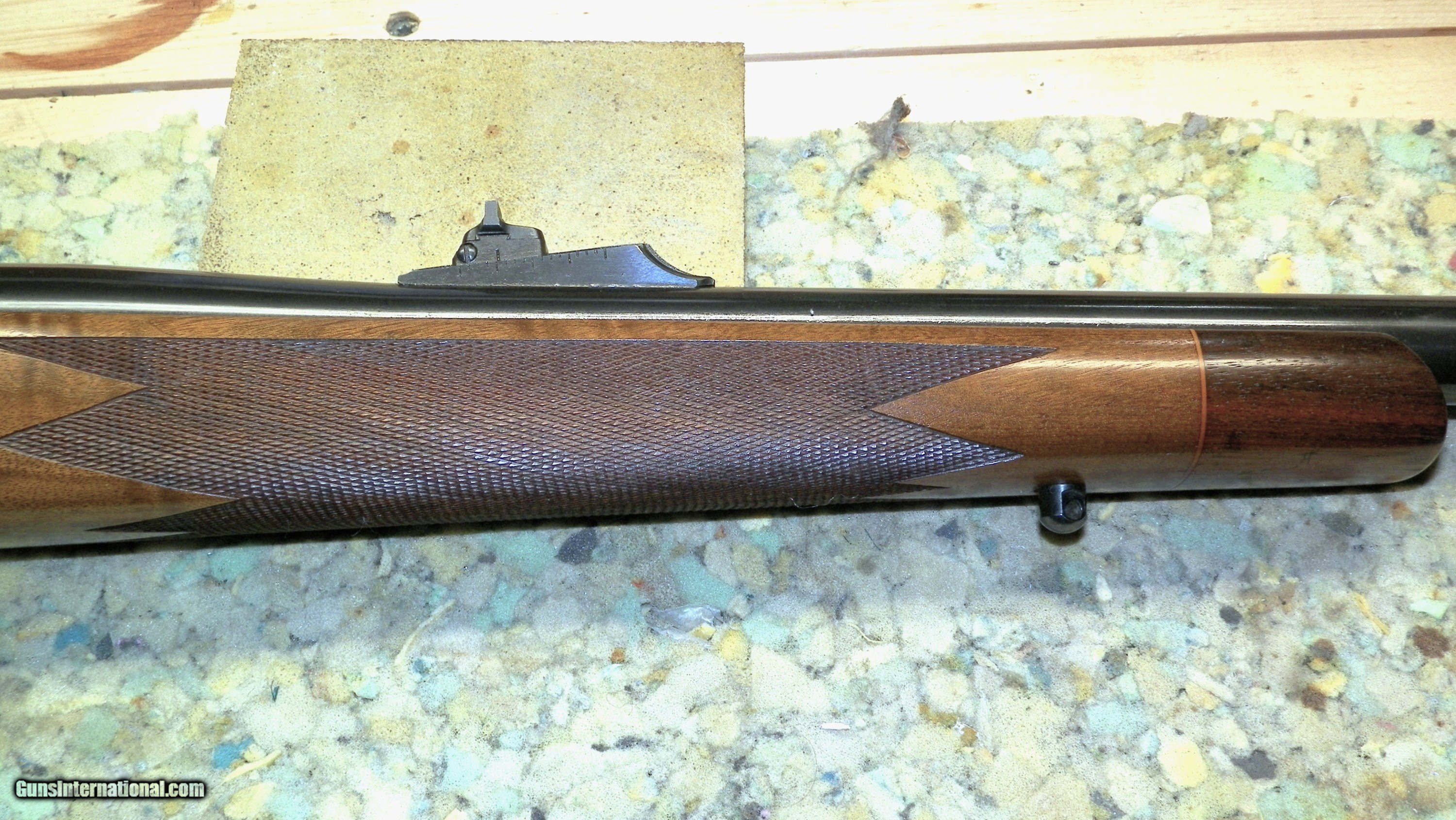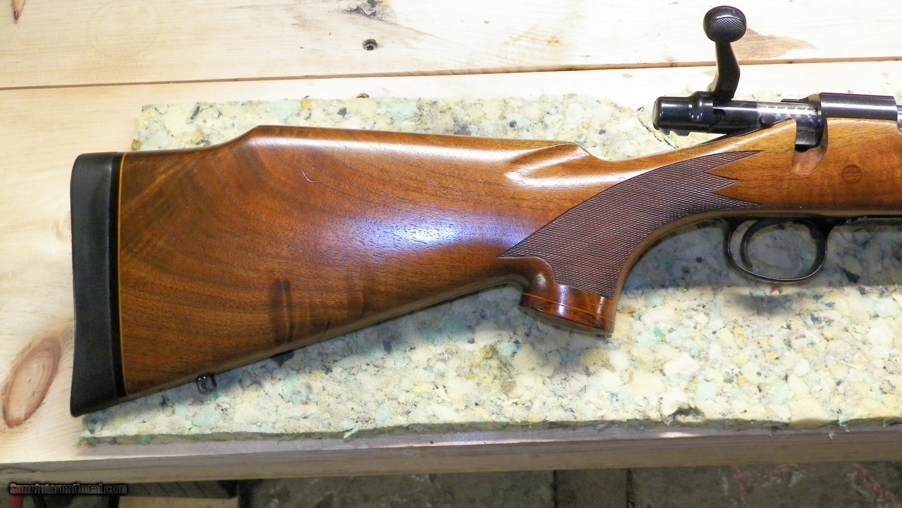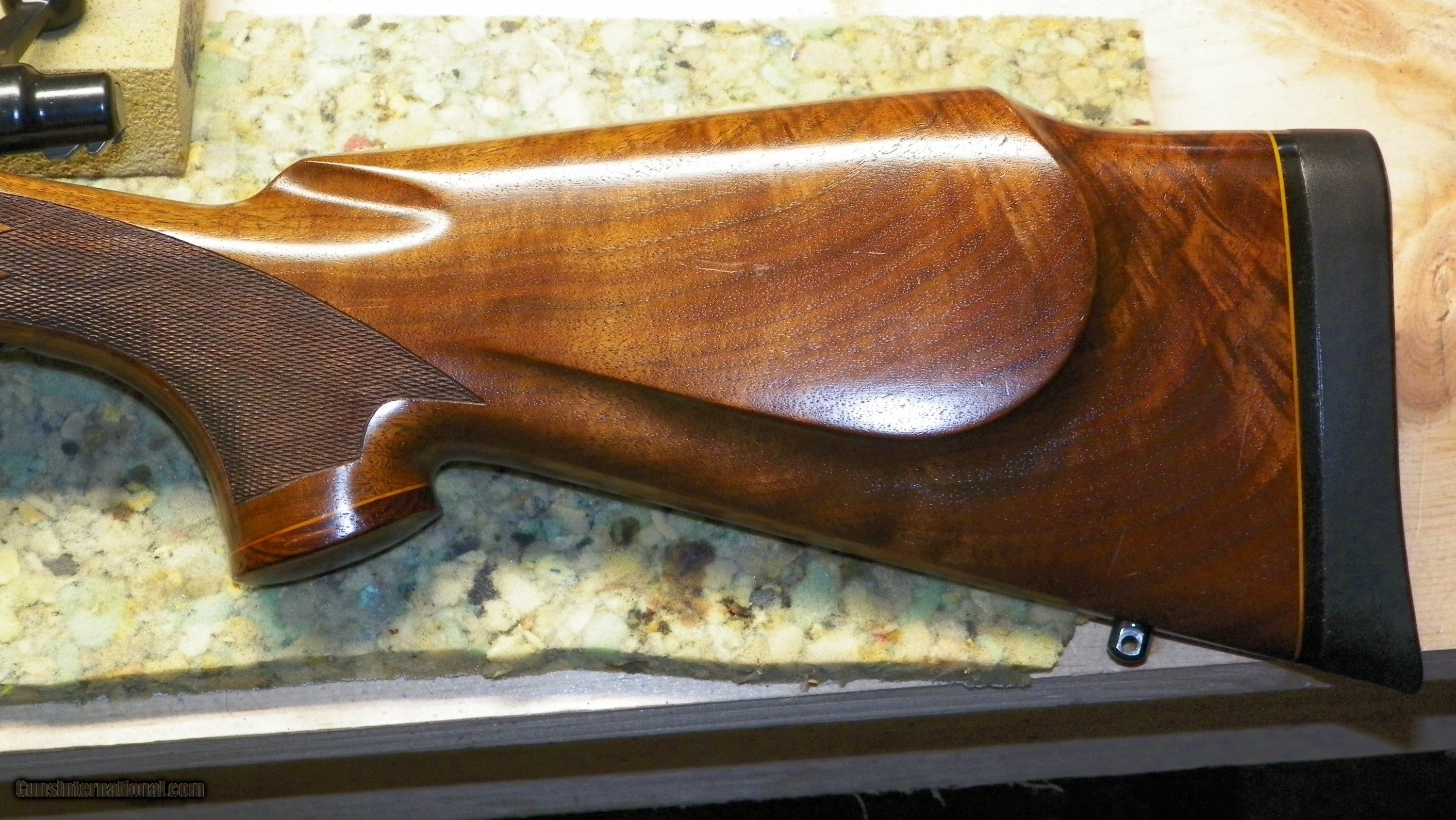 Description: 1976 Remington 700 BDL SAFARI in a 375 H & H Mag. in Excellent Condition.. Few very light scratches in a nicely grained Walnut stock.. SOLD Rifle Caliber: .375 H&H Magnum Manufacturer: Remington Model: 700 BDL SAFARI Serial Number: A6382336 Barrel Length: 24 Condition: Excellent Metal Condition: Excellent Plus Wood Condition: Excellent Bore Condition: Excellent Plus Barrel Type: Heavy Magnum Action: Bolt Triggers: Original factory Stock: Walnut Wood Weight: 9lbs. Sights: Factory Original Manufacture Date: 1976 |