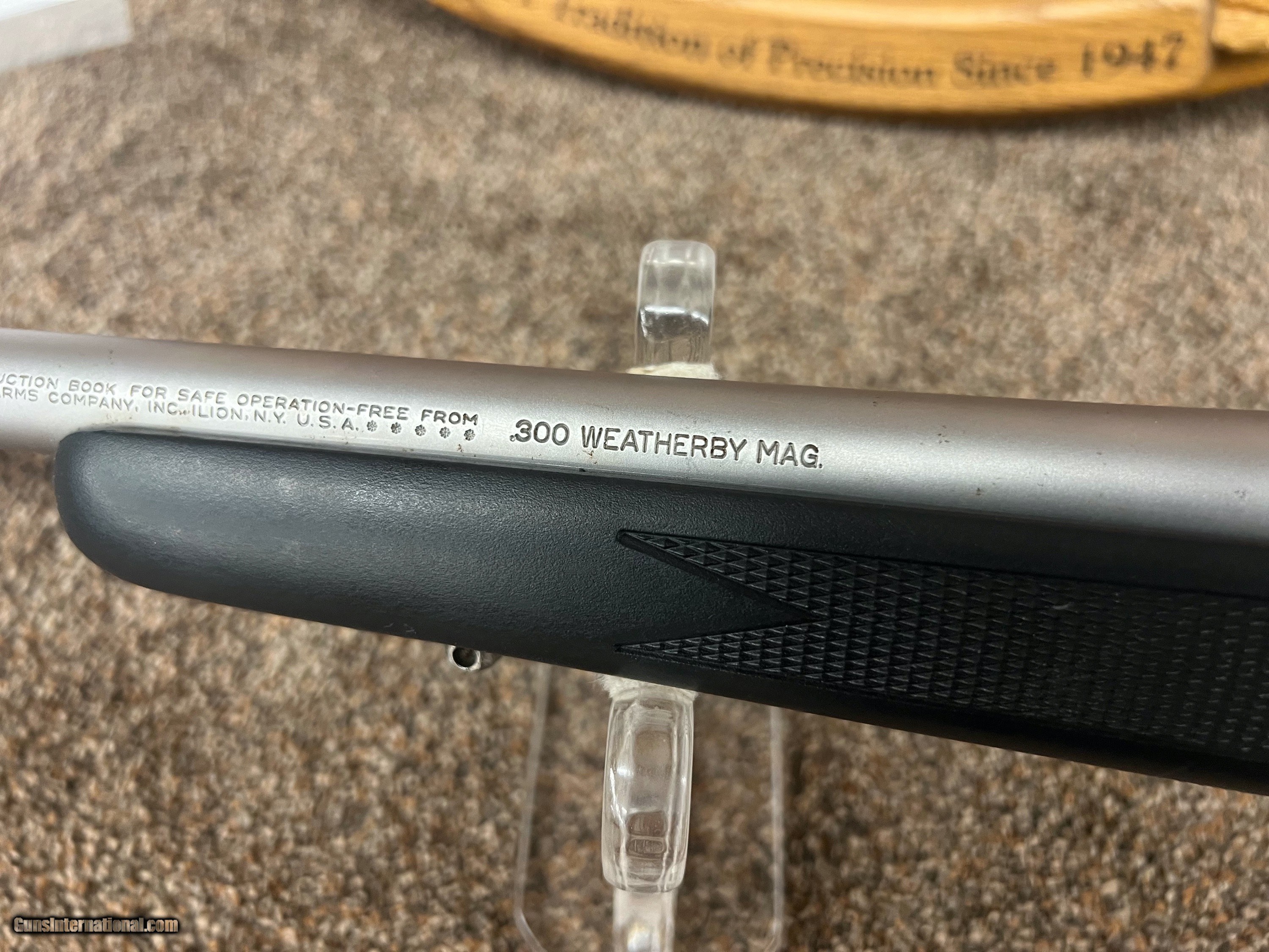 Description: Here's a used Remington 700 BDL SS DM 300 Wby Mag, exc bore, 24" stainless barrel, with rings, black synthetic stock with hunting wear, detachable magazine, shows use. 50.00 shipping SOLD Rifle Caliber: .300 Weatherby Magnum |