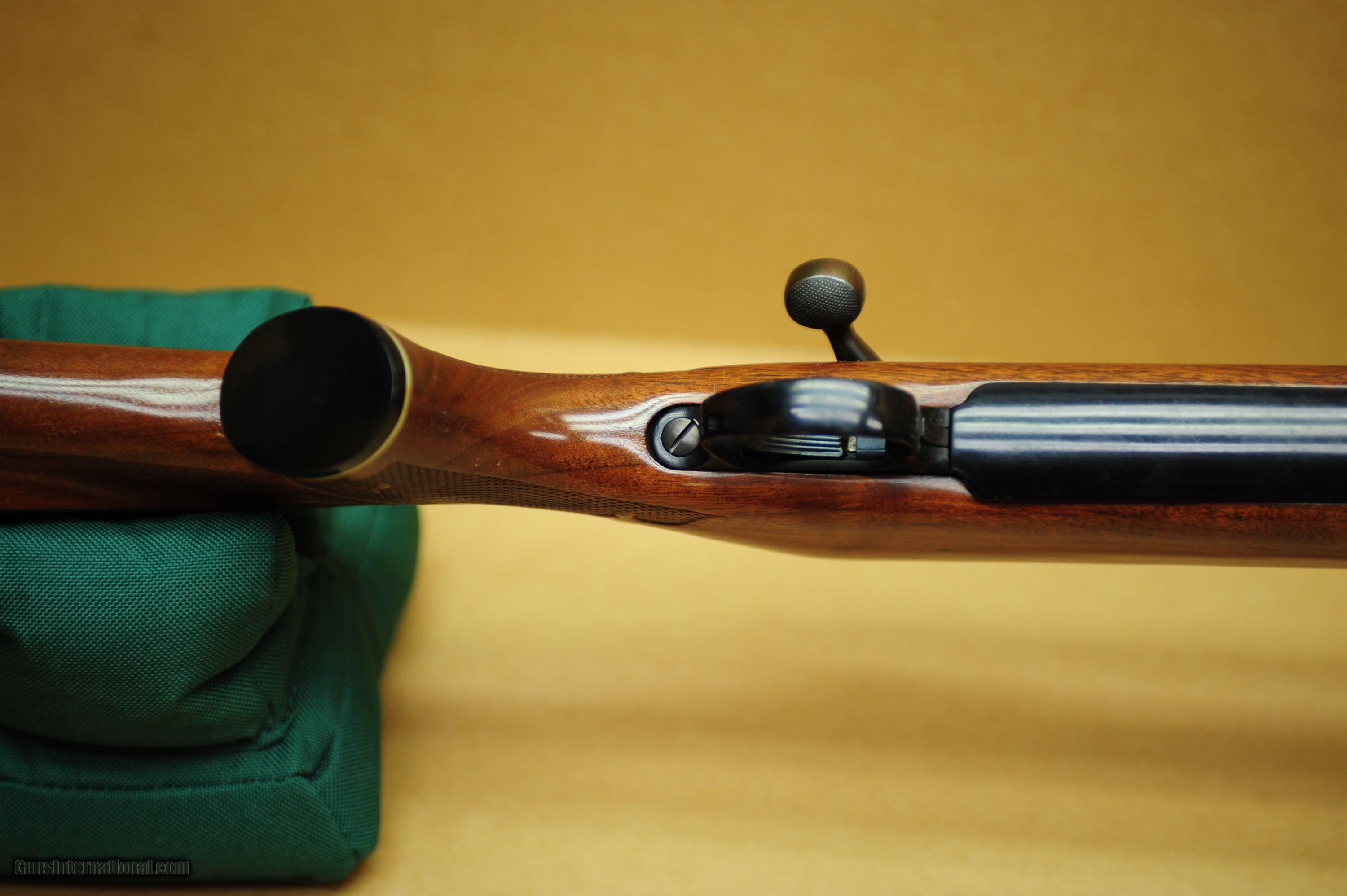 Description: Remington 700 BDL with a 24" stainless steel barrel in 300 win mag. Remington produced the first three magnum calibers with stainless steel barrels. 18529 BDL's were made in this caliber from 1963 to 1972. The stainless steel barrels were discontinued after 1972. This rifle was made in August of 1963. Serial number 812XX. Very few rifles were produced in the white. Most were plated black. $1195.00 plus shipping SOLD |