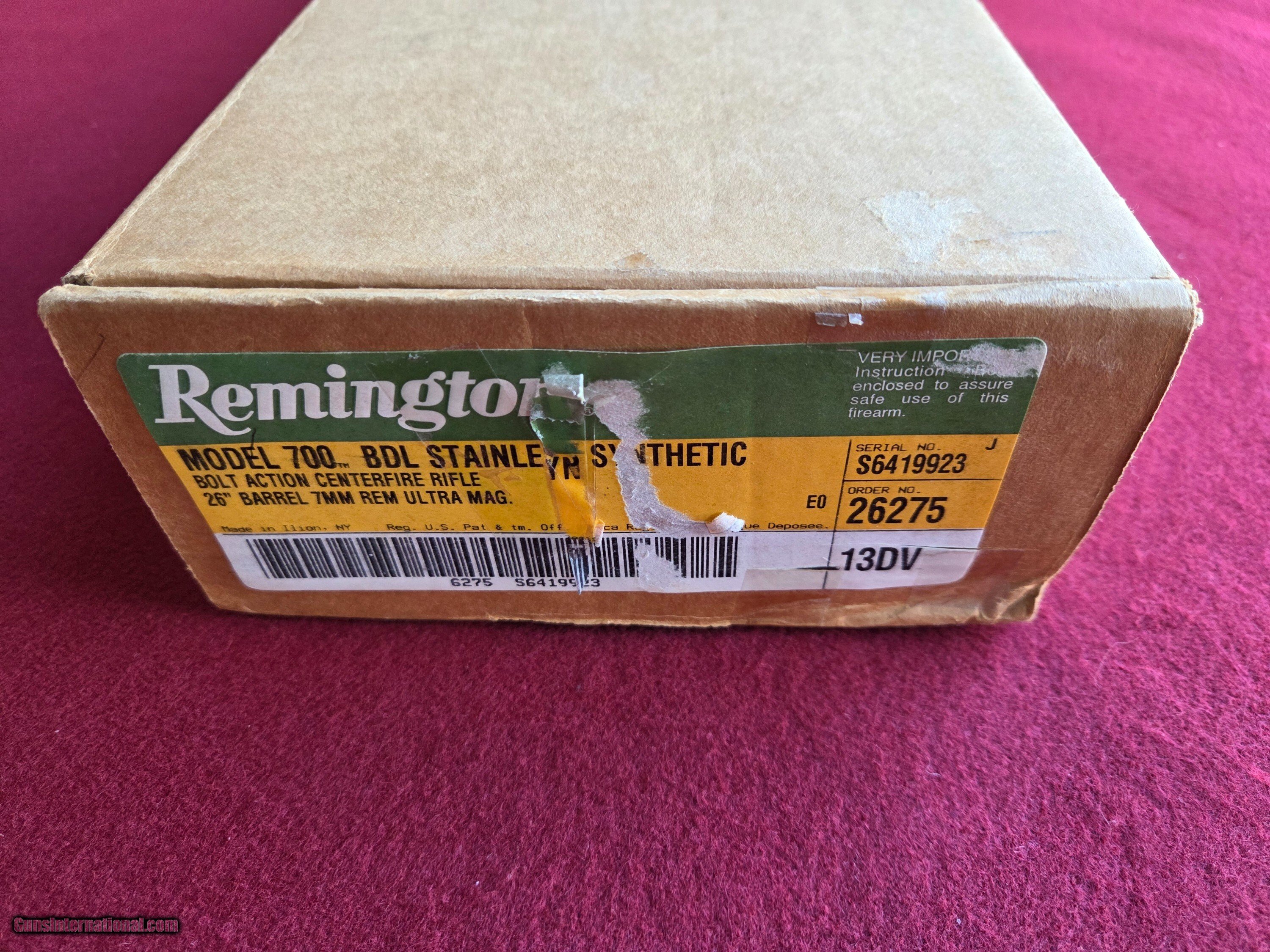 Remington 700 BDL Stainless Synthetic, 7mm RUM, 26” BBL, Ca. 2002. New In Box!