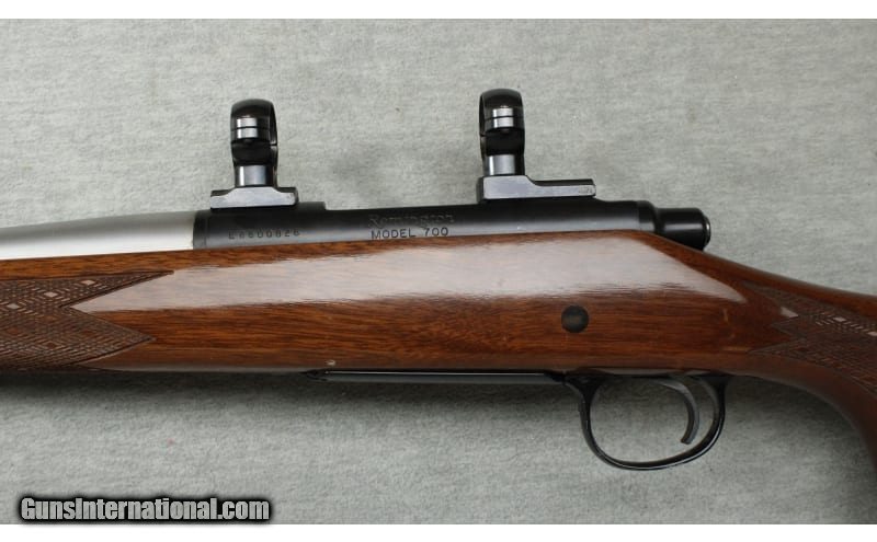 Description: Remington Model 700 chambered in .17 Remington. The Remington 700 has been made for over 50 years and was the number one selling bolt-action of all time. The strength of its 3-rings-of-steel receiver paired with a hammer-forged barrel, combines to create the most popular bolt-action rifle in history. The simple design and out-of-box accuracy make this a first choice for affordable rifles. The high-gloss American walnut stock is enhanced by a distinctive black fore-end cap, Monte Carlo comb with raised cheekpiece, and generous cut checkering. Metalwork has matte bluing on the action, trigger, and trigger guard. The barrel has a flat stainless finish. Features include a hinged magazine floorplate, sling swivel studs, ramp front sight and adjustable rear sight. The .17 Remington is based on the .223 Remington case necked down to .172 inch with the shoulder moved back. It was designed exclusively as a varmint round, though it is suitable for smaller predators. .17 Remington SOLD Metal Condition: Excellent Wood Condition: Excellent with minor handling marks Bore Condition: Bright Barrels: 26 Inches varmint weight Triggers: Factory Stock Dimensions: LOP 13 1/2 Inches Fore End: Checkered walnut Butt Pad: Plastic pad Weight: 8 Lbs 2 oz Sights: 1 Inch rings for scope mounting Item Location: La Vista, NE |