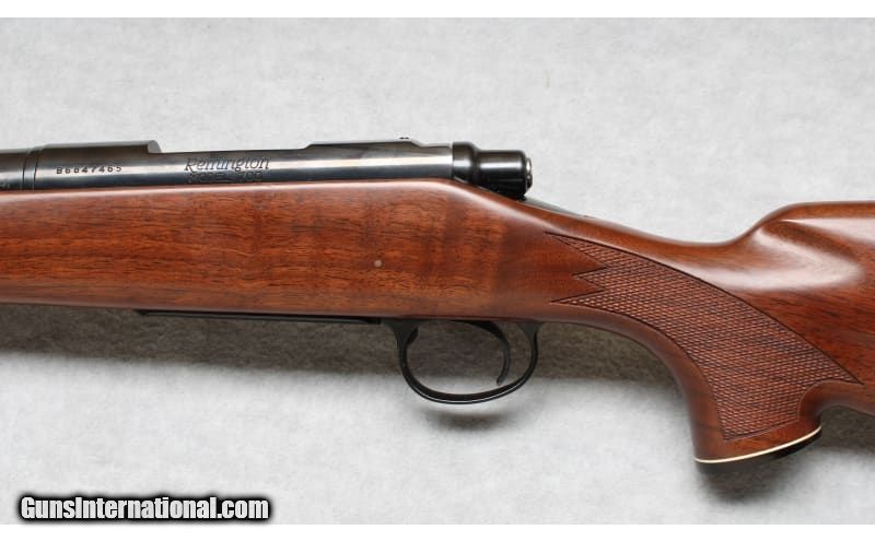 Description: Excellent condition, light wear, few small scratches. Remington Model 700 rifle with 24" bull barrel, smooth action with jeweled bolt and crisp trigger pull. Nicely checkered wood with contrasting forend tip, right hand cheek rest and factory but tplate. .243 Winchester SOLD Chambers: Bolt action Metal Condition: Excellent Wood Condition: Excellent Bore Condition: Bright Barrels: 24 Triggers: Factory Stock Dimensions: 13 1/2" LOP Fore End: Checkered with contrasting tip Butt Pad: Factory butt plate Sights: Drilled and tapped for optic mounting Item Location: La Vista, NE |