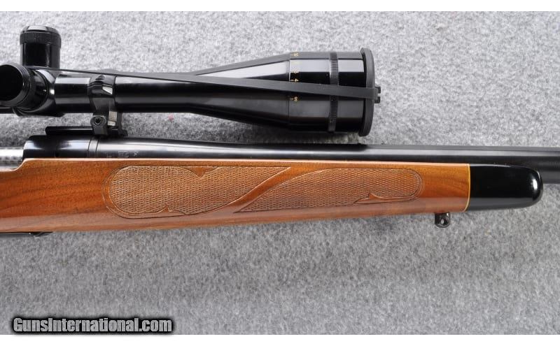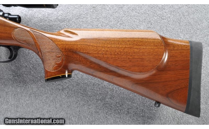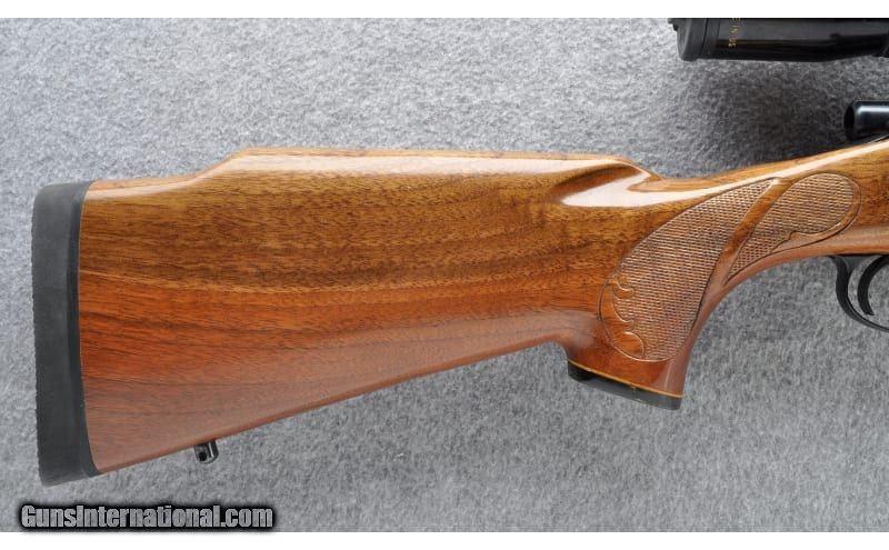 Description: The Remington Model 700 BDL Varmint was introduced in 1967. This rifle was manufactured in 1969 and is in exemplary condition. .243 Winchester SOLD Chambers: .243 Winchester in a four round box magazine Metal Condition: "Good, showing a bit of blue wear at the muzzle and bolt handle Wood Condition: "Good, with a small mark at the grip cap and cheek piece Bore Condition: Bright Barrels: 24" Varmint weight Stock Dimensions: 13 3/8" LOP Fore End: Press checkered walnut with ebony tip and sling stud Butt Pad: Decelerator by Pachmayr Weight: 10 Lbs. 4 Oz. Sights: "No sights, fitted with a Burris 6-18x Fullfield Scope with lens caps Item Location: Grand Junction, CO |