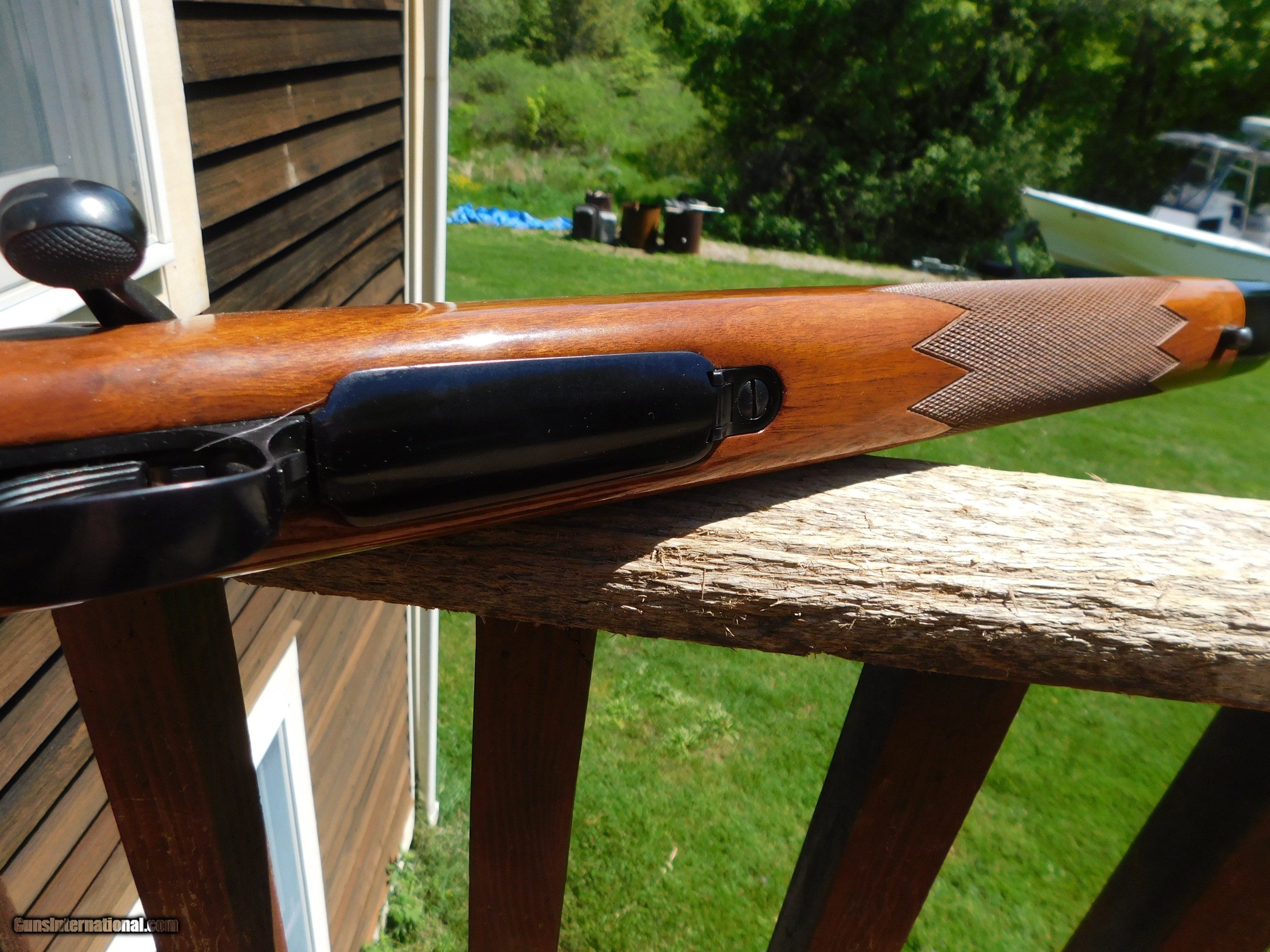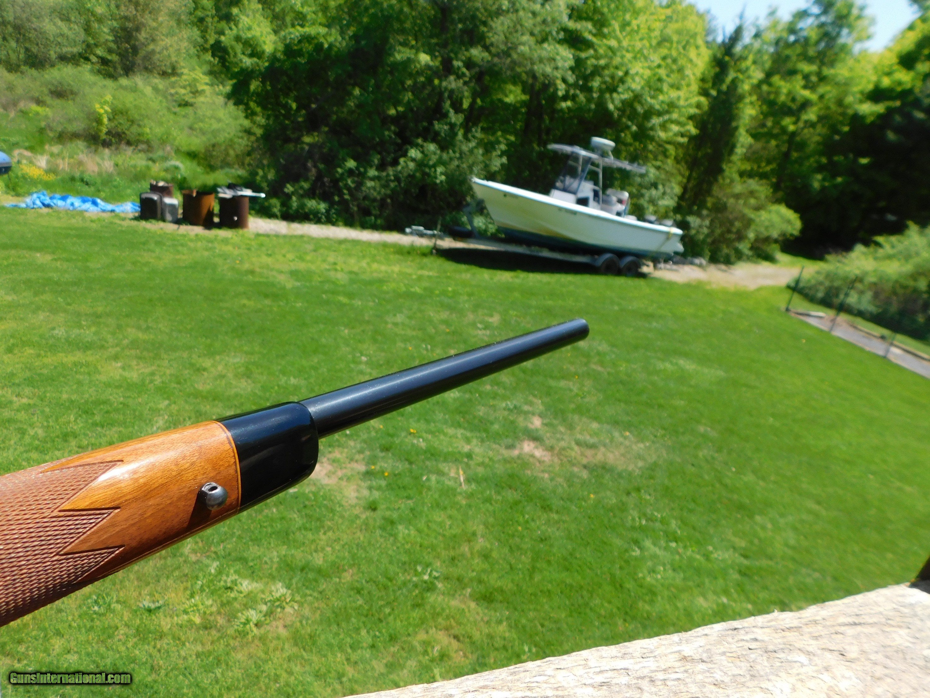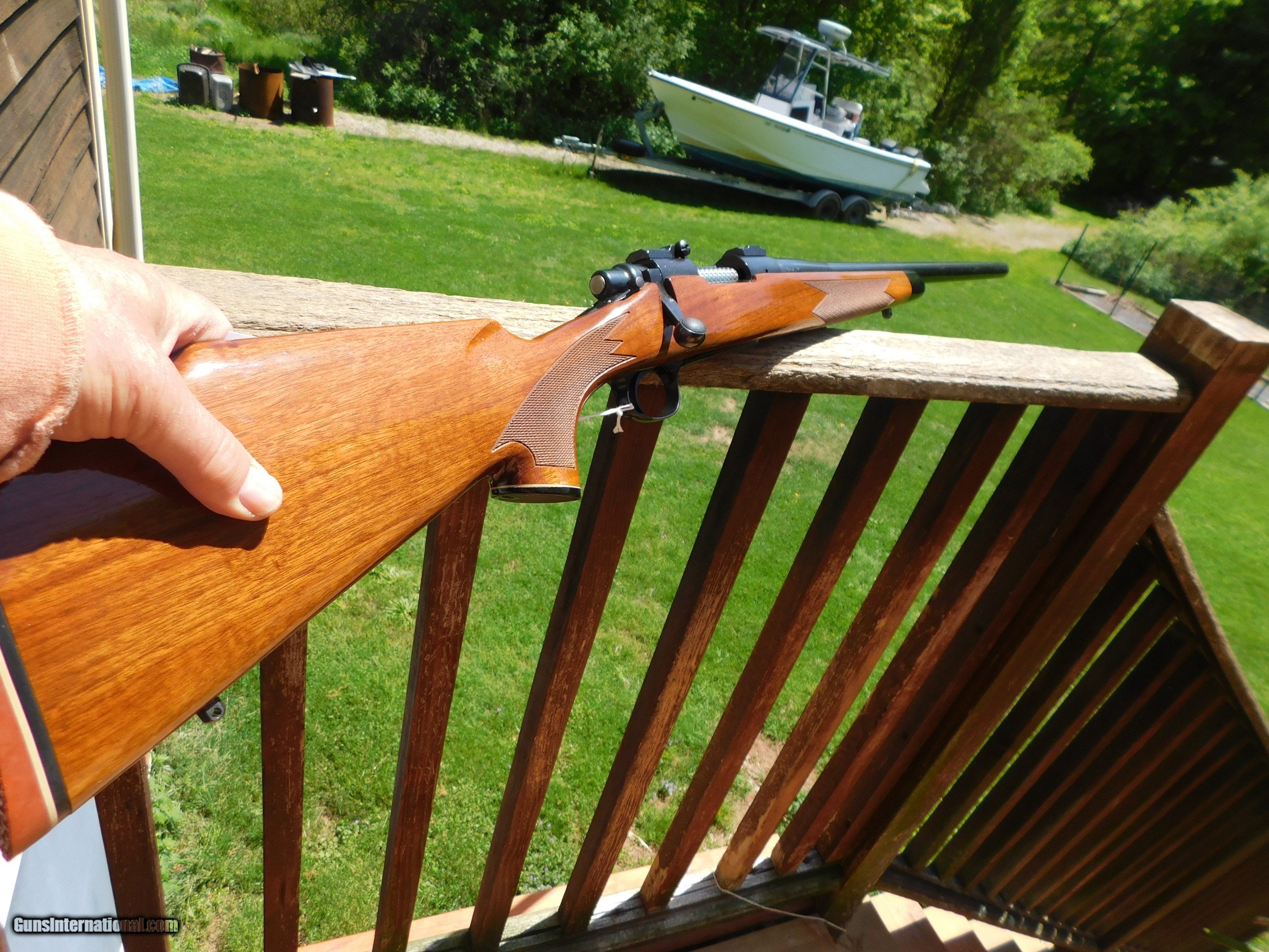 Description: Sale Pending Mike R. NJ 5/16/23 layawy. Wow, this heavy barreled wood stock Varmint model could not be much nicer, with only the most minor evidence of being handled. A thin rubber pad was added to the butt stock, not sure why as the recoil from the 22-250 class cal in a rifle of this weight is insignificant ? This gun was made in Feb of 1976 which makes it a 3d generation model following the fleur de lis and the later ribbon checkered versions. These are known for exceptional out of the box accuracy and only a slighlty different varient were used as Viet era sniper rifles . We hae a number of good used Leupolds and other scopes that would go niceley with this fine rifle Shipping with insurance is $ 65.00 IF IT DOES NOT SAY ."SALE PENDING, UNDER DEPOSIT or ON HOLD"...IT IS AVAILABLE. WE DO NOT REPLY TO INQUIRIES THAT SAY "INTERESTED IN THIS GUN" OR "IS IT AVAILABLE" IF YOU WOULD LIKE TO BUY THIS OR ANY OF OUR GUNS WE SUGGEST YOU PHONE US; WE ARE OFTEN AVAIALABLE LONG HOURS. IF YOU ARE INTERSTED IN A GUN THAT IS UNDER DEPOSIT AND WOULD LIKE TO BE NOTIFIED IF A SIMILAR GUN COMES IN DROP US A LINE AND WE WILL MAKE EFFORTS TO CONTACT YOU WHEN ONE DOES COME IN. WE HAVE OVER 2000 SALES ON ALL SITES WITH AN A+ RATING ON ALL WE ALSO KEEP AN INVENTORY OF OLDER PERIOD CORRECT SCOPES; CALL WITH NEEDS WE MOSTLY PICK VERY CLEAN AND LIGHLTY USED GUNS. WE ARE HAPPY TO TAKE CONSIGNMENT GUNS AND COLLECTIONS OR WILL BUY YOURS OUTRIGHT. WE SOMETIMES ARE EMPLOYED FOR ESTATE PURPOSES AND VALUATIONS. AT THIS TIME WE ARE ONLY ACCEPTING US POSTAL MONEY ORDERS OR BANK CHECKS FOR PAYMENT IT IS THE BUYERS RESPONSIBILITY TO GET US A COPY OF YOUR RECEIVING FFL'S LIC AND A COPY OF YOUR PHOTO ID BEFORE THE GUN SHIPS YOU MUST CALL OR CONTACT YOUR FFL.WE DO NOT CALL FOR YOU UNLESS THEY RQUIRE IT. LAYAWAY PURCHASES NOT COMPLETED ON ANY RETURNED ITEM UNLESS NOT AS DESCRIBED OR DAMAGED ARE SUBJECT TO A 10% RELISTING/RESTOCKING FEE AND MUST BE RETURNED WITH NO NEW MARKS OR SCRATCHES, SENT BACK INSURED, PRIORITY SIGNATURE REQUIRED. ALL INFORMATION CONTAINED HEREIN IS BELIEVED TO BE ACCURATE BUT IS NOT GUARANTEED. WITH ANY OLDER OR USED GUN IT SHOULD BE INSPECTED BY A GUNSMITH PRIOR TO SHOOTING. SOLD |