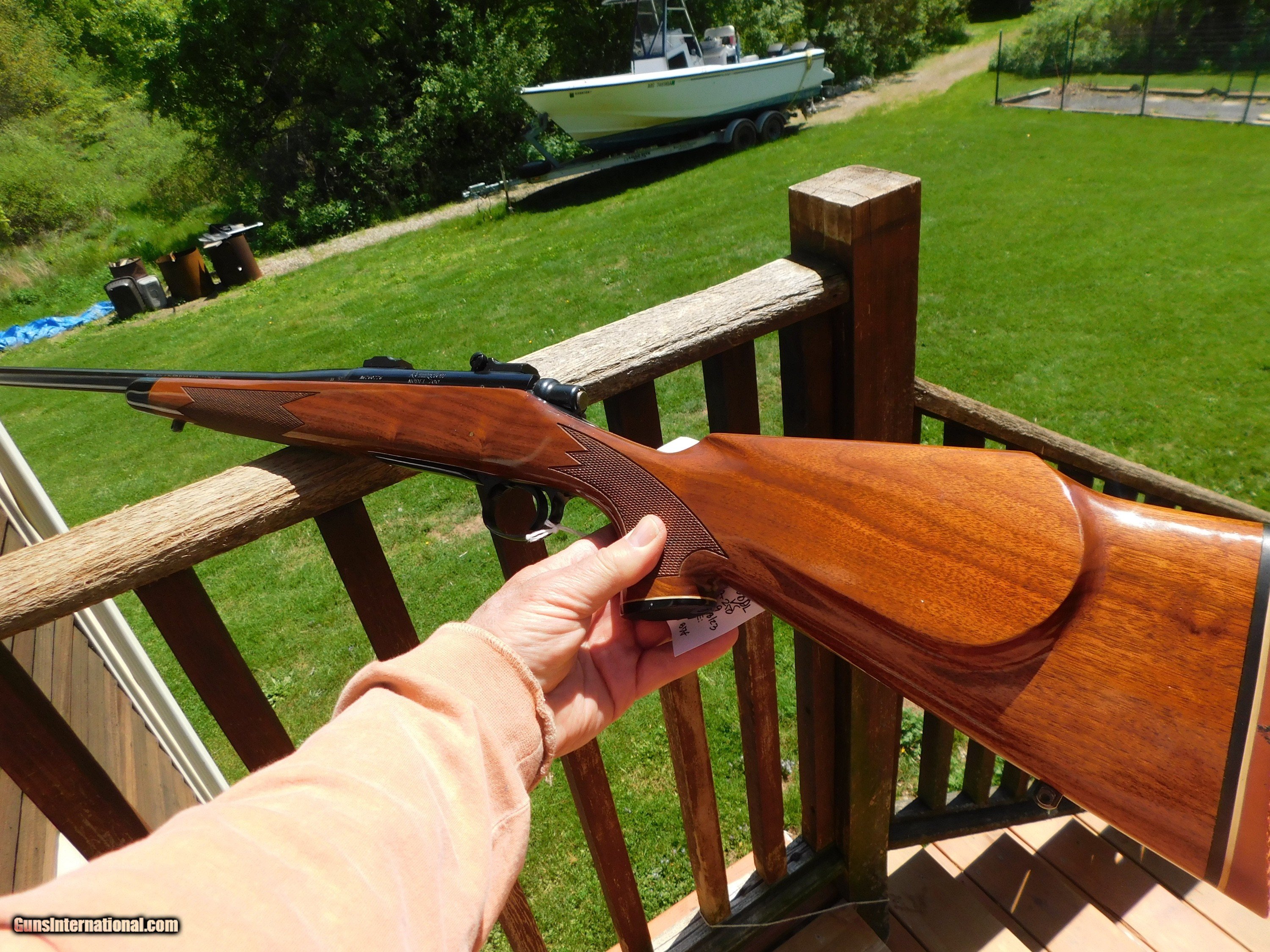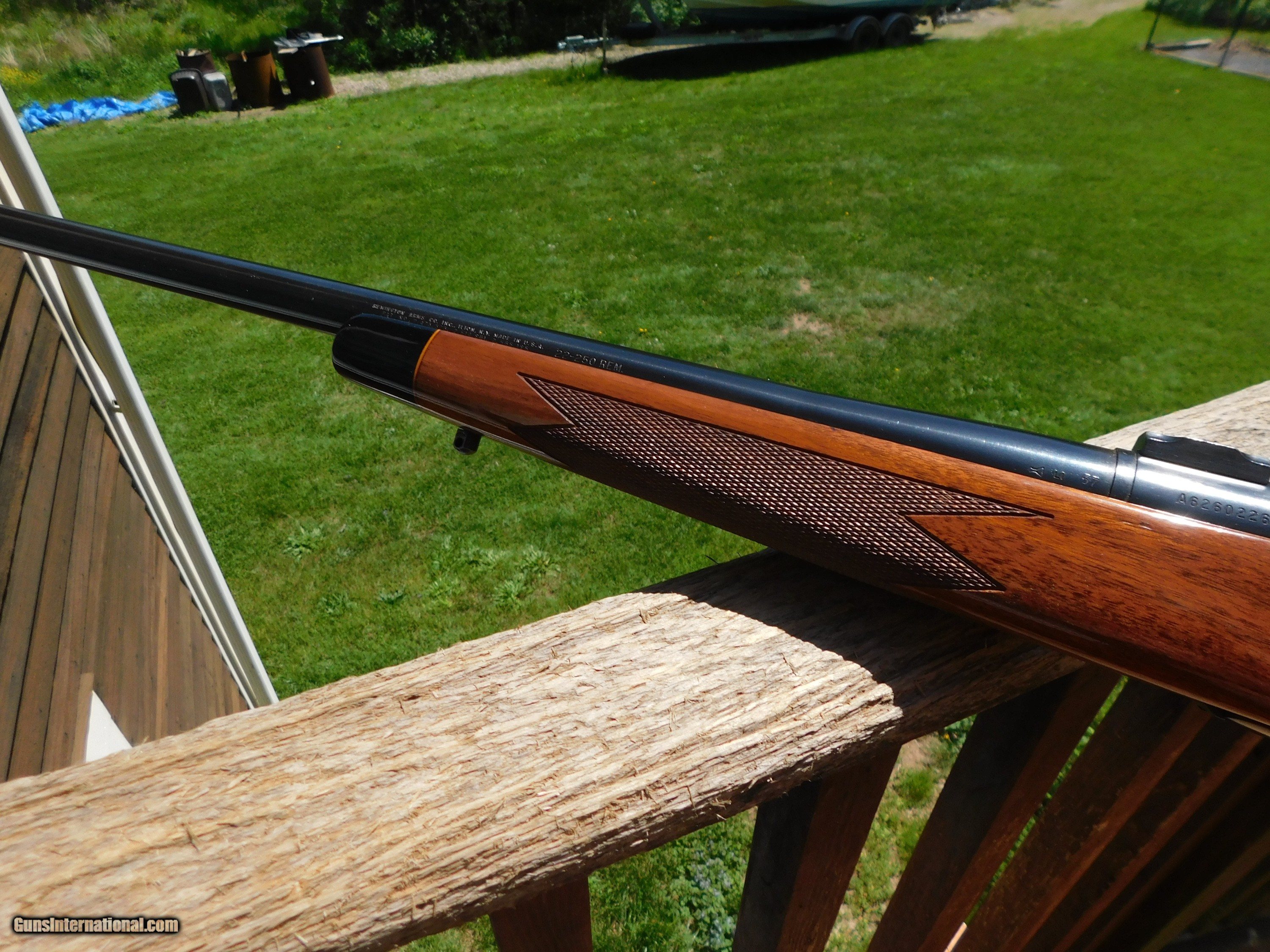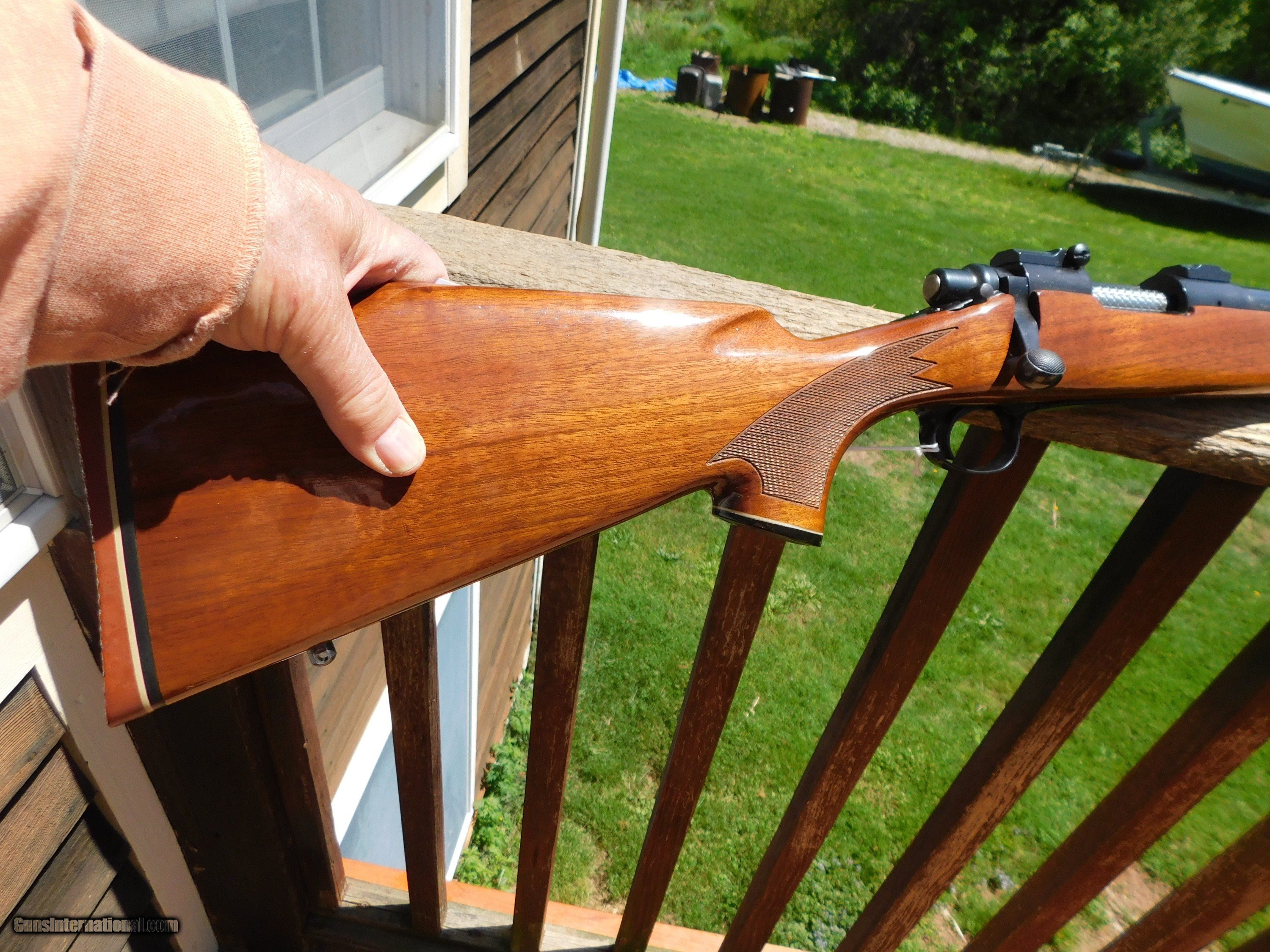 Description: Sale Pending Mike R. NJ 5/16/23 layawy. Wow, this heavy barreled wood stock Varmint model could not be much nicer, with only the most minor evidence of being handled. A thin rubber pad was added to the butt stock, not sure why as the recoil from the 22-250 class cal in a rifle of this weight is insignificant ? This gun was made in Feb of 1976 which makes it a 3d generation model following the fleur de lis and the later ribbon checkered versions. These are known for exceptional out of the box accuracy and only a slighlty different varient were used as Viet era sniper rifles . We hae a number of good used Leupolds and other scopes that would go niceley with this fine rifle Shipping with insurance is $ 65.00 IF IT DOES NOT SAY ."SALE PENDING, UNDER DEPOSIT or ON HOLD"...IT IS AVAILABLE. WE DO NOT REPLY TO INQUIRIES THAT SAY "INTERESTED IN THIS GUN" OR "IS IT AVAILABLE" IF YOU WOULD LIKE TO BUY THIS OR ANY OF OUR GUNS WE SUGGEST YOU PHONE US; WE ARE OFTEN AVAIALABLE LONG HOURS. IF YOU ARE INTERSTED IN A GUN THAT IS UNDER DEPOSIT AND WOULD LIKE TO BE NOTIFIED IF A SIMILAR GUN COMES IN DROP US A LINE AND WE WILL MAKE EFFORTS TO CONTACT YOU WHEN ONE DOES COME IN. WE HAVE OVER 2000 SALES ON ALL SITES WITH AN A+ RATING ON ALL WE ALSO KEEP AN INVENTORY OF OLDER PERIOD CORRECT SCOPES; CALL WITH NEEDS WE MOSTLY PICK VERY CLEAN AND LIGHLTY USED GUNS. WE ARE HAPPY TO TAKE CONSIGNMENT GUNS AND COLLECTIONS OR WILL BUY YOURS OUTRIGHT. WE SOMETIMES ARE EMPLOYED FOR ESTATE PURPOSES AND VALUATIONS. AT THIS TIME WE ARE ONLY ACCEPTING US POSTAL MONEY ORDERS OR BANK CHECKS FOR PAYMENT IT IS THE BUYERS RESPONSIBILITY TO GET US A COPY OF YOUR RECEIVING FFL'S LIC AND A COPY OF YOUR PHOTO ID BEFORE THE GUN SHIPS YOU MUST CALL OR CONTACT YOUR FFL.WE DO NOT CALL FOR YOU UNLESS THEY RQUIRE IT. LAYAWAY PURCHASES NOT COMPLETED ON ANY RETURNED ITEM UNLESS NOT AS DESCRIBED OR DAMAGED ARE SUBJECT TO A 10% RELISTING/RESTOCKING FEE AND MUST BE RETURNED WITH NO NEW MARKS OR SCRATCHES, SENT BACK INSURED, PRIORITY SIGNATURE REQUIRED. ALL INFORMATION CONTAINED HEREIN IS BELIEVED TO BE ACCURATE BUT IS NOT GUARANTEED. WITH ANY OLDER OR USED GUN IT SHOULD BE INSPECTED BY A GUNSMITH PRIOR TO SHOOTING. SOLD |