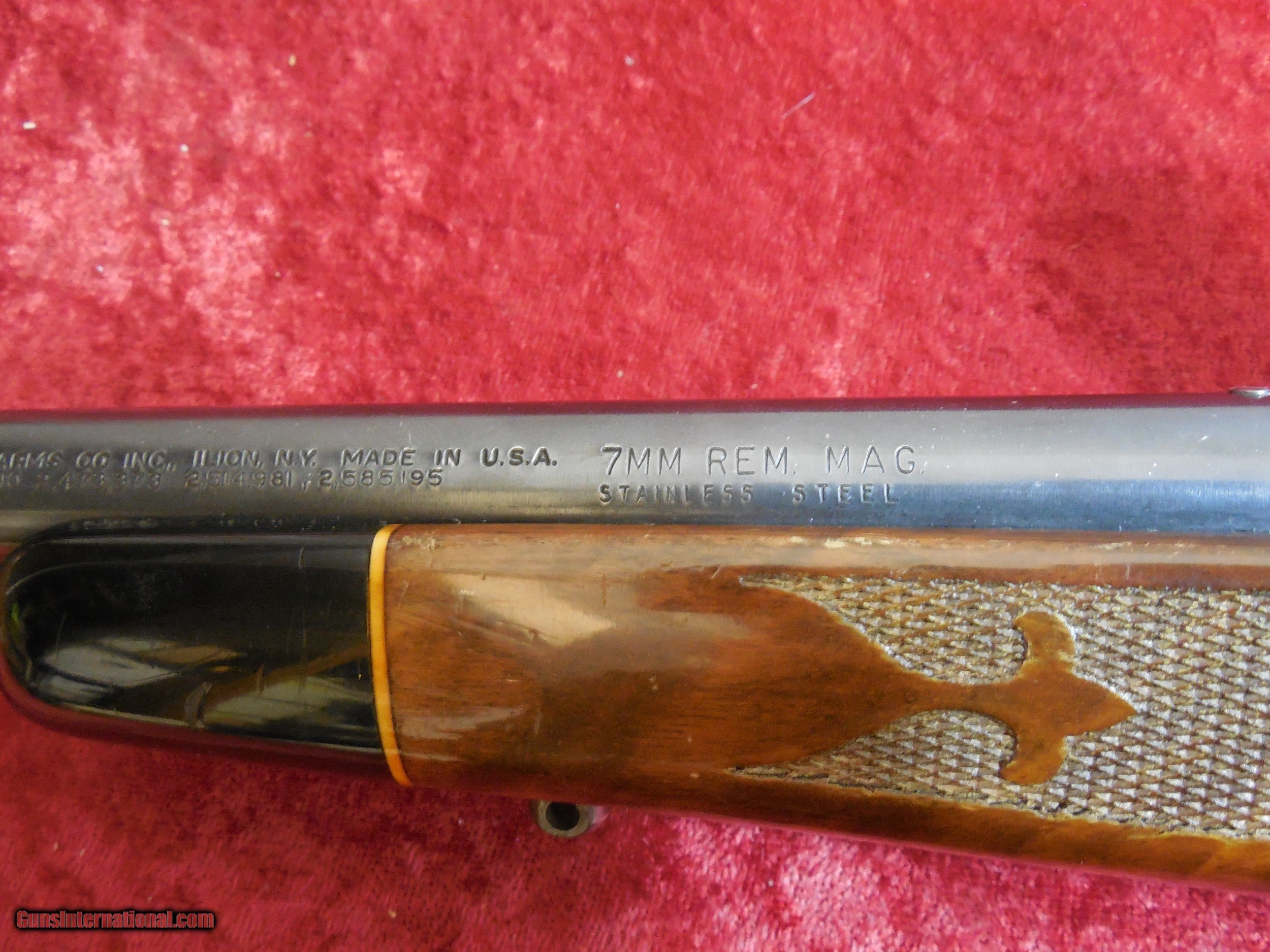 Description: Remington 700 bolt action 7 mm Rem Mag 24" bbl Good Shooter Grade!! This used Remington 700 features a dark walnut Monte Carlo stock with right hand cheek piece and black tip and grip caps. This rifle has seen some use and been on a few hunts. Stock has scratches, dings, and nicks throughout all sides. Don't have to worry about marking a mark on this rifle. Bluing has bluing wear on both sides and mostly at the tip--Bore is bright and shiny. It currently has a Leupold Vari X II 2x7 scope which is not included in the listing price but can be purchased separately. Please see pictures for best description and ask any questions.