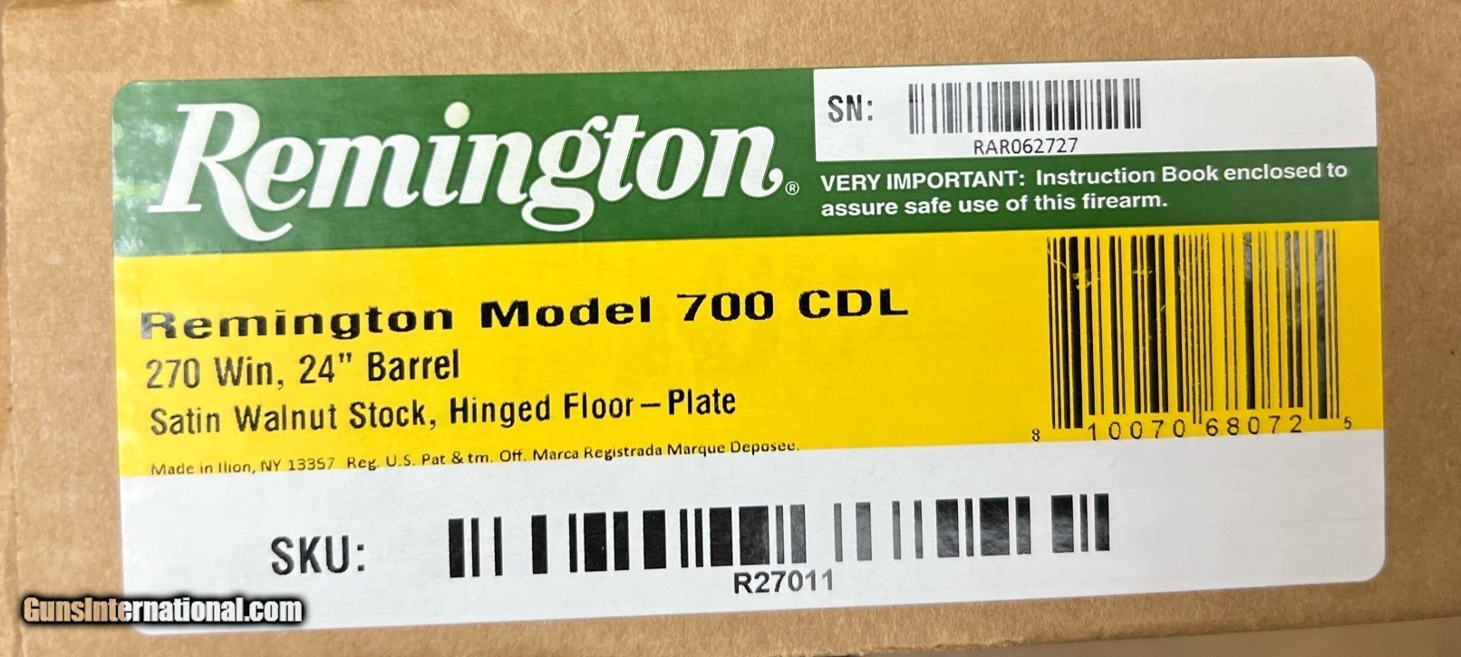 Description: MANUFACTURER: Remington FAMILY: 700 Series MODEL: 700 CDL TYPE: Rifle ACTION: Bolt Action CALIBER/GAUGE: 270 Win FINISH: Satin Blue FINISH TYPE: Blued STOCK: Wood Stock STOCK/GRIPS: Satin Finish American Walnut BARREL: 24" OVERALL LENGTH: 44.5" DRILLED / TAPPED RATE-OF-TWIST: 1-in-10 CAPACITY: 4 SHIPPING WEIGHT: 8.75 lbs. SAFETY FEATURES: 2-Position Thumb Safety ADDL INFO: Sling Swivel Studs ADDL INFO: X-Mark Pro Adjustable Trigger MFG MODEL NO: R27011 SOLD Rifle Caliber: .270 Winchester Manufacturer: Remington Model: 700 CDL Barrel Length: 24" Barrel Condition: BRAND NEW |