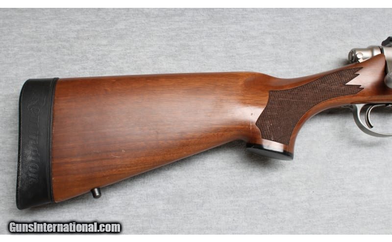 Description: Excellent condition, light finish wear, few small scratches. Classic Remington 700 with 24" fluted stainless barrel, smooth action and crisp trigger pull. A good choice for hunting many types of North American game animals. .270 Winchester SOLD Chambers: Bolt action Metal Condition: Excellent Wood Condition: Excellent Bore Condition: Bright Barrels: 24 Triggers: Factory Stock Dimensions: 13 3/4" LOP Fore End: Checkered Butt Pad: Factory pad Sights: Scope mounting bases installed Item Location: La Vista, NE |