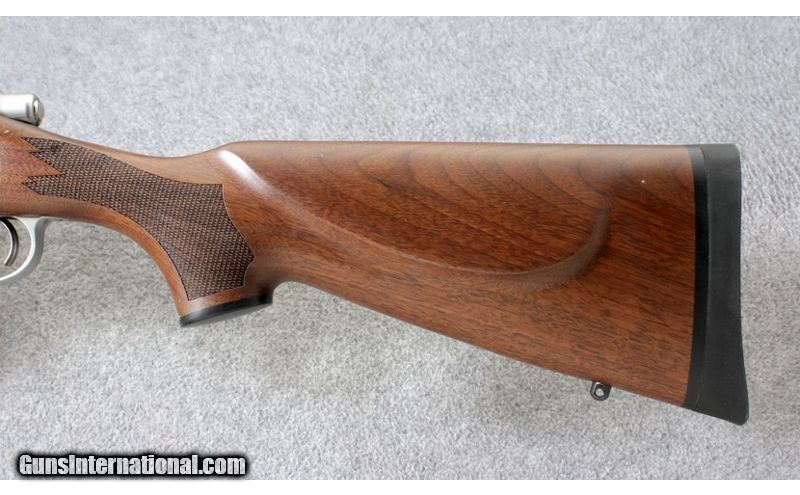 Description: The remarkable accuracy and unfailing reliability of the Remington Model 700 rifle is known around the globe. The CDL SF Limited-Edition Bolt-Action Rifle raises the bar even higher with the addition of a fluted, satin-finish stainless steel barrel and a receiver machined from solid-steel bar stock. 3-Rings-Of-Steel action delivers unrelenting accuracy and exceptional performance in the harshest conditions. X-Mark Pro externally adjustable trigger is highly tunable for the most discriminating shooter. The American-walnut stock and checkering provides eye-catching looks without sacrificing grip and comfort. The advanced recoil pad reduces felt recoil. An integral extractor uniformly supports the cartridge head for increased accuracy. .300 Winchester Magnum SOLD Manufacturer: 12/01/2017 Metal Condition: Excellent Wood Condition: Good overall with some scratches and scrapes on the right side of the fore end Bore Condition: Excellent Barrels: 26 inch fluted stainless barrel Triggers: X-Mark Pro adjustable single stage trigger Stock Dimensions: 13 5/8 inch lop Fore End: Checkered walnut fore end with contrasting wood cap Butt Pad: Remington rubber pad Weight: 7 Lbs. 2 Oz. Sights: Drilled and tapped for scope mounting Item Location: Lehi, UT |