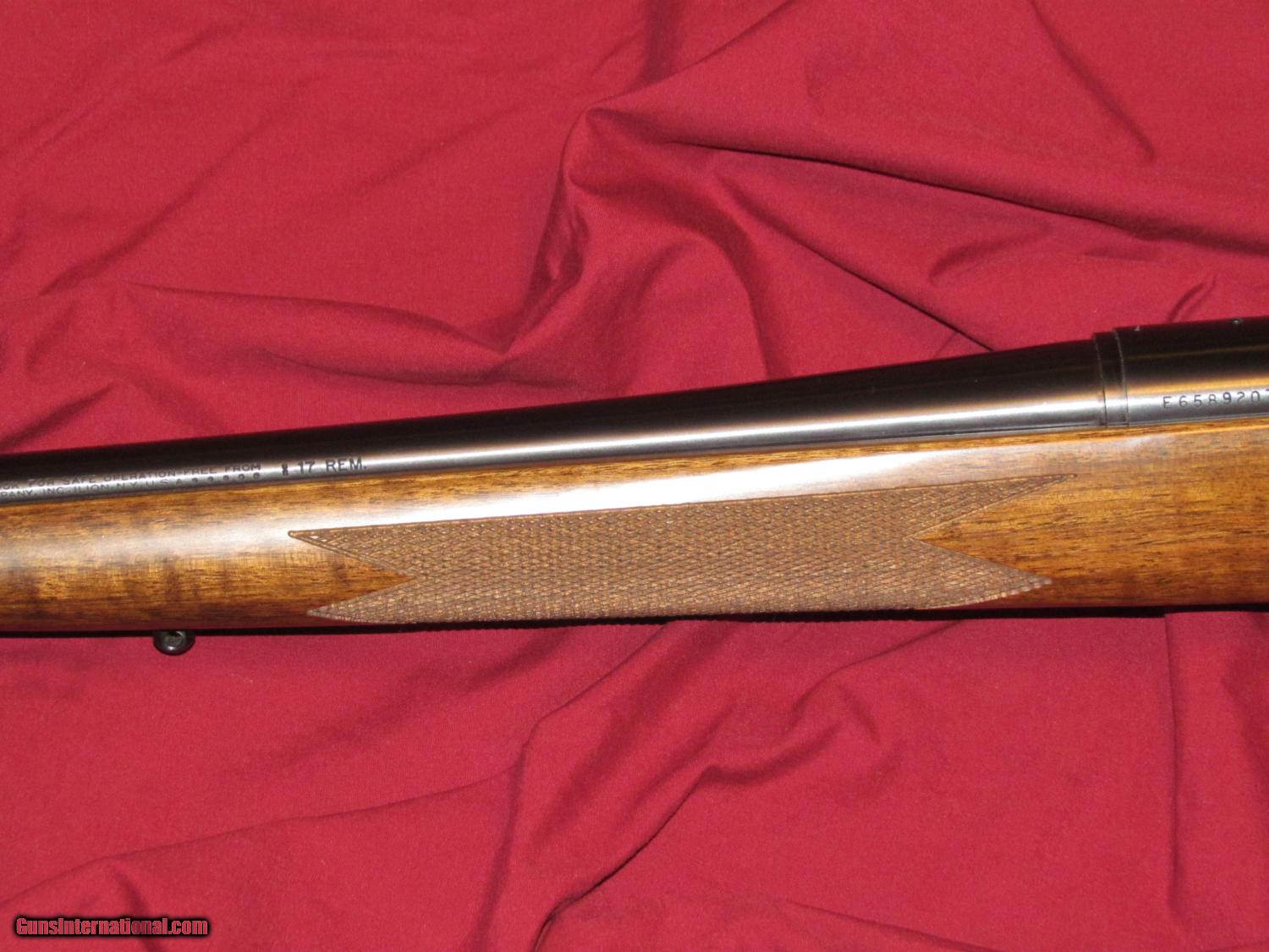 Description: This sale is for a hard to come by Remington Model 700 Classic in 17 Remington. This is new in the box and unfired, it has never had a scope mounted on it. It comes with its Remington box, no sights, original Remington trigger - stiff, satin walnut wood. It has a mark on the barrel. Photos say is all. This item is also for sale in our store, if it should sell it will be removed from Guns International. If you have any questions call Donny 307-250-4712. SOLD Manufacturer: Remington Model: 700 Caliber Info: 17 Remington Condition: Excellent |