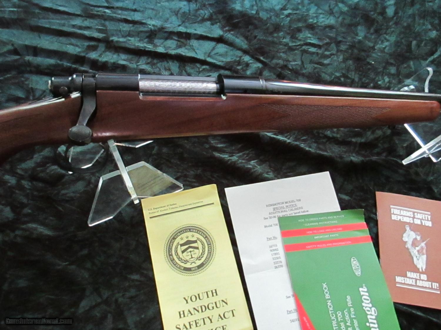 Description: Remington 700 Classic in .257 Roberts. New. Bolt action. Beautiful checkered walnut stock. Sling studs. 24 inch high luster blue barrel and action. Factory papers included. No box. This rifle is from my private collection . I am not a dealer. $1,195 plus shipping. 417-844-5828 SOLD Manufacturer: Remington Model: 700 Serial Number: B6394675 Caliber Info: .257 Roberts Condition: new Metal Condition: new Wood Condition: new Bore Condition: new Action: bolt Stock: classic walnut |