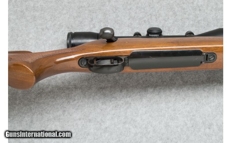 Description: Used. SOLD Caliber Info: .300 Win. Mag. Metal Condition: Very good; overall Wood Condition: Very good; a few handling marks Bore Condition: Clean and sharp Barrels: 24 Triggers: Wide grooved target style Stock: Classic checkered pistol grip walnut Stock Dimensions: LOP - 13 3/8 Fore End: Checkered walnut Butt Pad: Brown rubber pad Weight: 8 lbs. 15 oz. (with scope) Sights: No sights; Bushnell scope Extras: Bushnell Trophy 3-9 x 40mm scope with mounts. Item Location: Sun Prairie, WI |