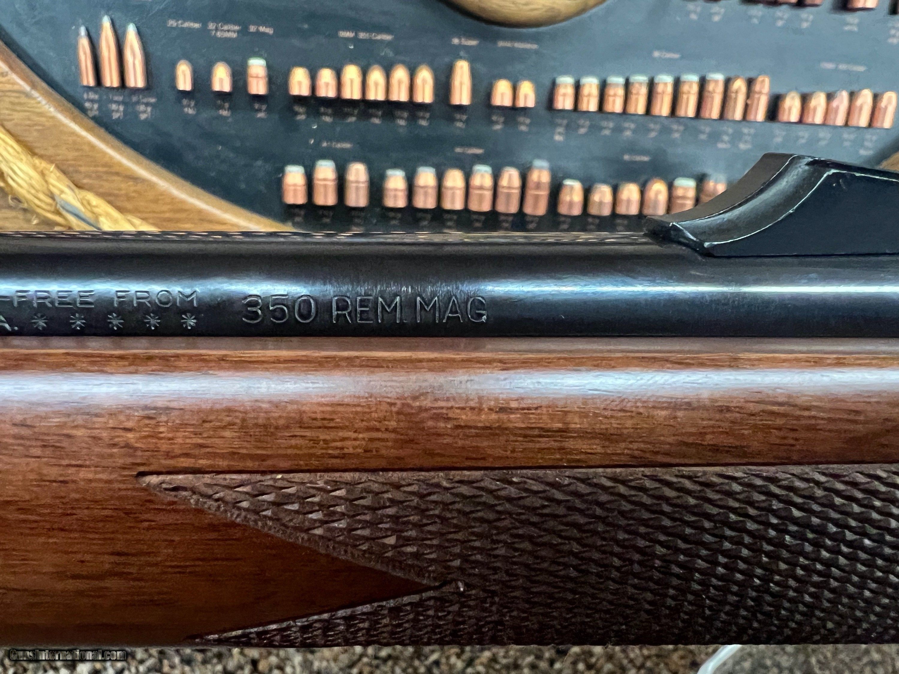 Description: Here's a new in the box Remington 700 Classic 350 Rem Magnum, 22" barrel, open sights, classic stock, solid pad, nice wood, orig box, made in 1985! Credit card charge 2.99% 50.00 shipping SOLD Rifle Caliber: .350 Remington Magnum |