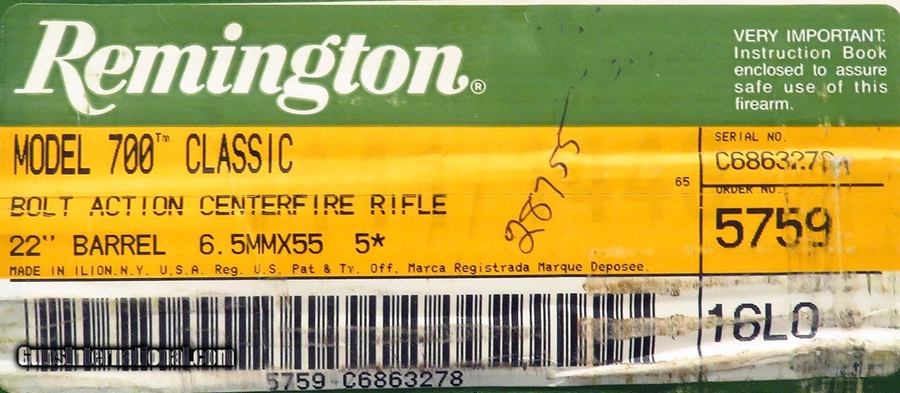 Remington 700 Classic 6.5x55, unfired, box, 98 percent