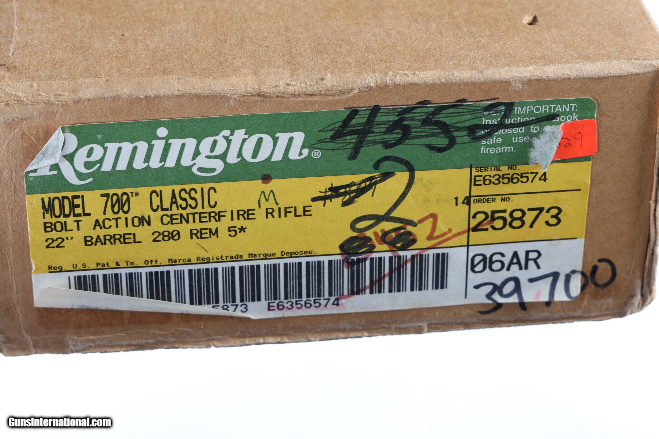 Description: Like new with matching factory box, papers, and VHS tape. • Free Shipping, No Credit Card Fees. • Lay-a-way available for this firearm. • 1/3 Down, a 1/3 in 30 Days 1/3 in 60 Days. SOLD Manufacturer: Remington Model: 700 Classic Serial Number: E6356574 Barrel Length: 22 |