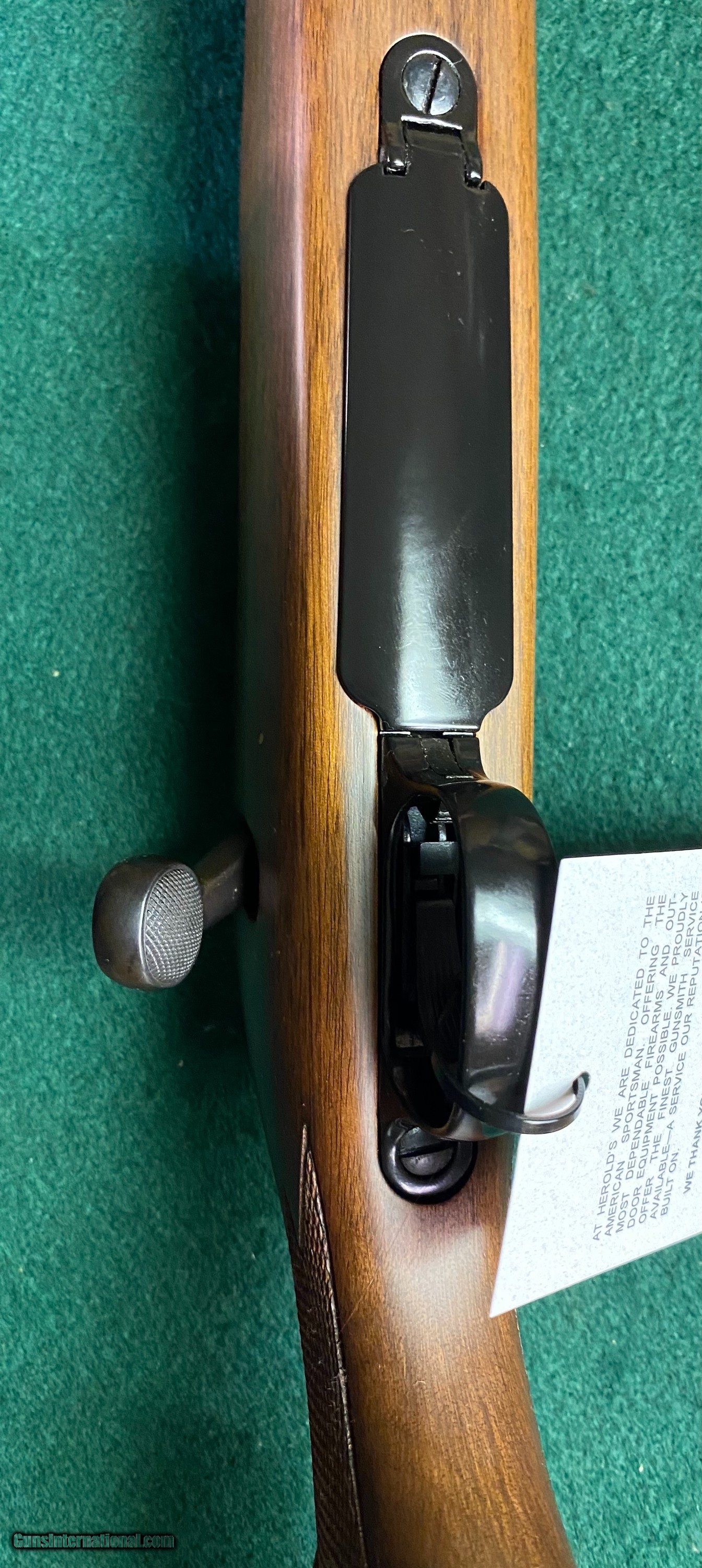 Description: Another trade-in item that has been sitting in a box for over 20 years is here for sale. It's a Remington 700 classic in .17 Remington. This rifle was manufactured in 1999 and has been sitting in a box since. This can be considered as new/old stock with box. We reserve the right to sell this item at our retail location until an offer is placed with Guns International. We accept major credit cards with a 4% surcharge and we also will take your personal checks, however we do not ship the item until your check clears our bank. Herold's Gun Shoppe specializes in classic American rifles and revolvers. Almost 100 firearms in stock for you to choose from. We are open Tuesday through Saturday, 9 AM to 5 PM. Closed on Sundays and Mondays. We'd like to take a moment to thank everyone for your continuing support & patronage for our little Mom & Pop store during these trying and troubled times! SOLD Rifle Caliber: .17 Remington Manufacturer: Remington Model: 700 Classic Serial Number: E65135xx Barrel Length: 24” Condition: New/old stock |
