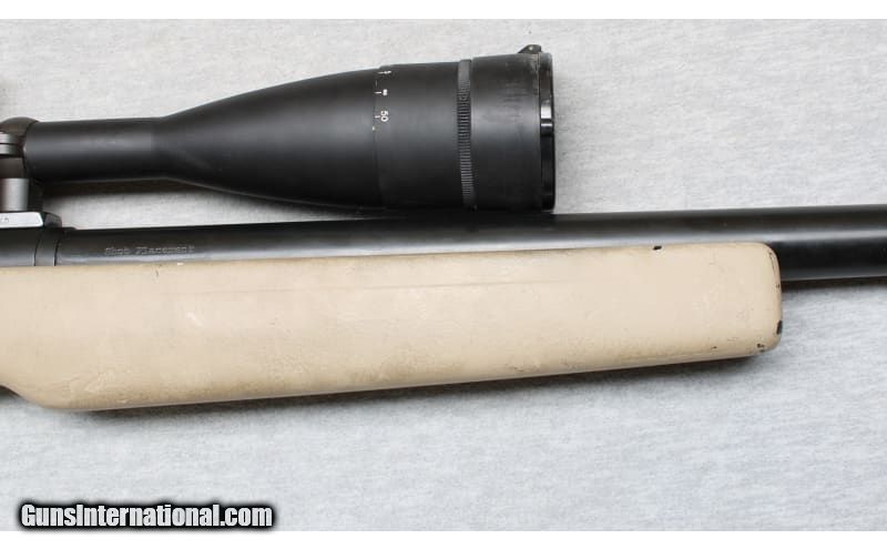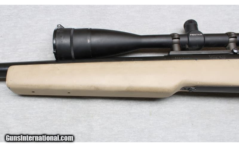 Description: Remington 700 Custom rifle chambered in 6.5-284 Norma. The Remington 700 has been made for over 50 years and was the number one selling bolt-action of all time. The strength of its 3-rings-of-steel receiver paired with a hammer-forged barrel, combines to create the most popular bolt-action rifle in history. This is a heavy barrel bench-rest rifle with a polymer stock and a rubber recoil pad. It has a Pentax 8.5-32 x 50mm Scope. The 6.5-284 Norma is based on the .284 Winchester cartridge necked down to 6.5 mm. It is used primarily in benchrest competitions. It is known to be an extremely accurate long-range round. 6.5-284 Norma SOLD Metal Condition: Very Good Bore Condition: Bright Barrels: 28 Inches Triggers: Factory Stock Dimensions: LOP 13 3/4 Inches Fore End: Textured synthetic Butt Pad: Rubber pad Sights: Pentax 8.5-32 x 50mm Scope Item Location: La Vista, NE |