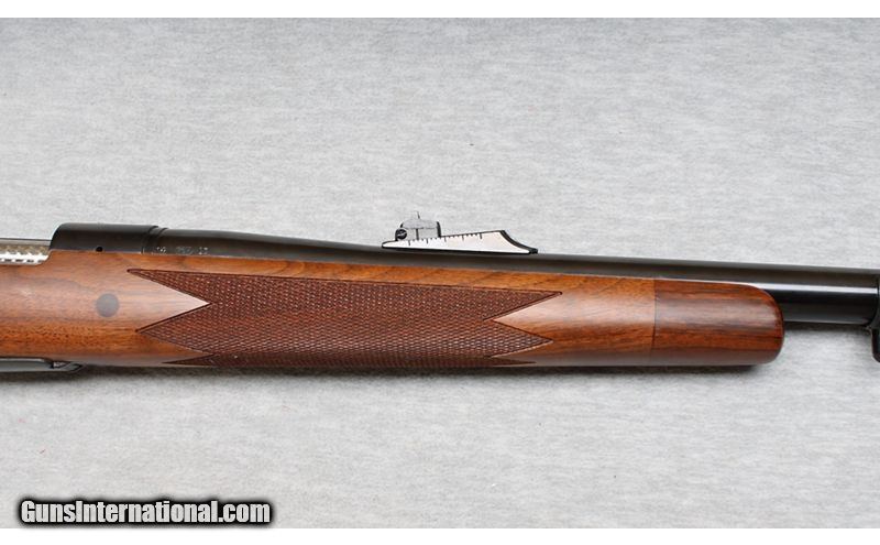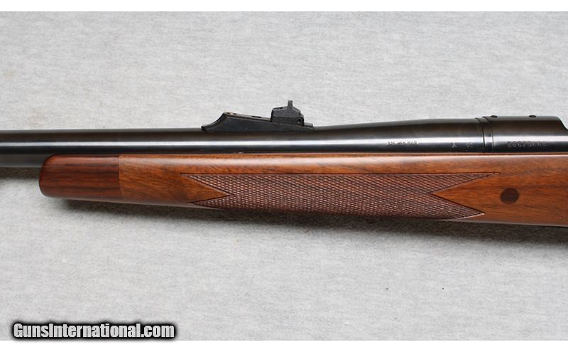 Description: Remington Model 700 Custom Shop Rifle .458 Win. Mag. Appears as new, smooth bolt action, crisp trigger, jeweled bolt, premium wood, express type iron sights and a heavy barrel make this a great choice for hunting big game animals. .375 H&H Magnum SOLD Metal Condition: Excellent Wood Condition: Excellent Bore Condition: Bright Barrels: 24 Inch Round Custom Shop Barrel Triggers: Factory Stock Dimensions: 13 1/2 Inches Fore End: Checkered Walnut Butt Pad: Rubber Pad Sights: Adjustable iron sights and drilled and tapped for scope mounting. Item Location: La Vista, NE |