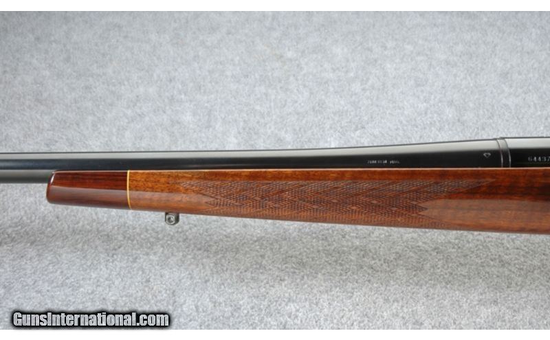 Description: SOLD Caliber Info: 7mm Rem. Mag. Metal Condition: Excellent Wood Condition: Very good with numerous small dents and light impression in the finish Bore Condition: Excellent, bright and sharp Barrels: 24 inch Stock: Checkered walnut Monte Carlo stock with cheek piece Stock Dimensions: 13 1/4 inch LOP Fore End: Checkered walnut with rosewood tip Butt Pad: Pachmayr rubber pad Weight: 7 lbs. 11 oz. Sights: Drilled and tapped for scope mounting Item Location: Lehi, UT |