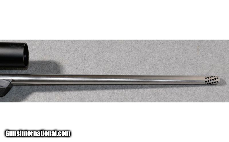 Description: The recoil lug is unmarked. The caliber is unknown, but we believe it to be .22-250 Rem. None SOLD Chambers: "Unknown, we believe it to be .22-250 Rem but this is unverified. Metal Condition: Like New Wood Condition: Like New Bore Condition: "Like New, Shiny and sharp Barrels: "30"" Barrel, 1.250"" at chamber tapered down to .838"" at the muzzle. The internal diameter of the muzzle break measures .264"". Triggers: "Timney Elite 700 trigger, the trigger is .253"" wide and set at approximately 14oz. Stock Dimensions: "12 3/4"" Length of pull, LOP and cheek height is quick adjustable. Fore End: Boyds Gunstocks AT-ONE Grey laminate stock Butt Pad: Boyds recoil pad Weight: 12lbs 10oz Sights: Fitted with a Vortex Viper 6-24x50mm riflescope in Weaver rings on a Blackhawk base. Item Location: Lacey, WA |