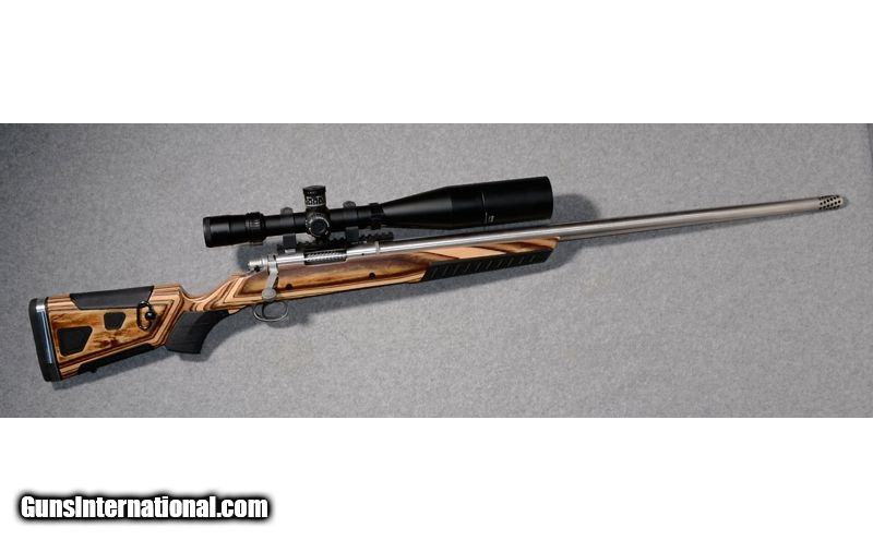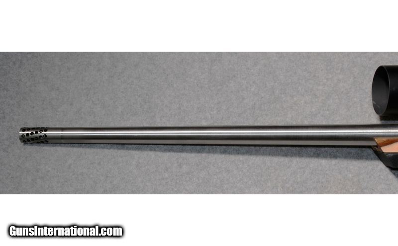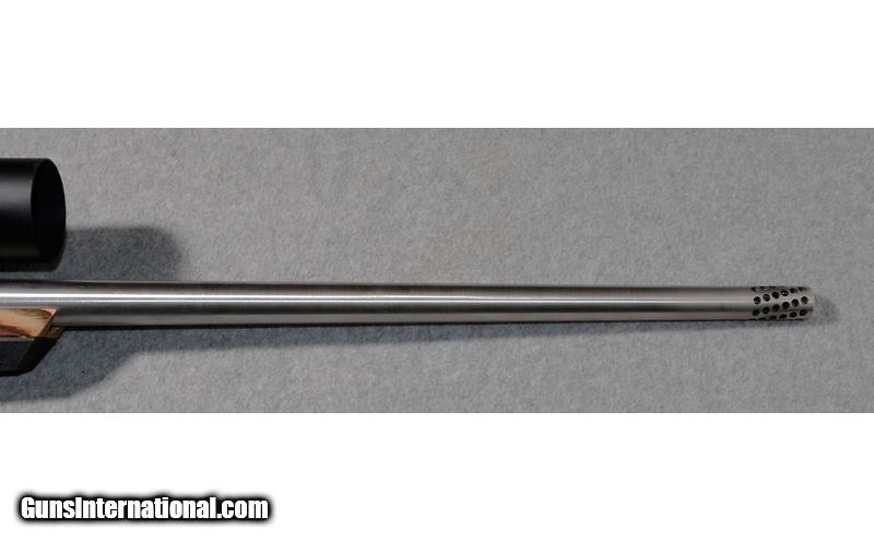 Description: The recoil lug is marked "PTG 5/19". The caliber is unknown, but we believe it to be .22-250 Rem. None SOLD Chambers: "Unknown, we believe it to be .22-250 Rem but this is unverified. Metal Condition: Like new Wood Condition: Like new Bore Condition: "Excellent, Shiny and sharp Barrels: "28"" Barrel, 1.193"" at chamber tapered down to .898"" at the muzzle. The internal diameter of the muzzle break measures .243"". Triggers: "Timney Elite 700 trigger, the trigger is .27"" wide and set at approximately 10oz. Stock Dimensions: "12 3/4"" Length of pull, LOP and cheek height is quick adjustable. Fore End: Boyds Gunstocks AT-ONE Coyote laminate stock Butt Pad: Boyds recoil pad Weight: 13lbs 1oz Sights: Fitted with a Nikon Black FX1000 6-24x50mm riflescope in Warne Mfg. Maxima rings on a Blackhawk base. Item Location: Lacey, WA |