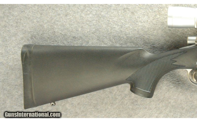 Description: Remington Model 700 DBM rifle 7mm Rem. Mag. Excellent condition with a premium Leupold scope in matching SS finish. Good choice in an all weather rifle capable of bringing down many North American game animals. SOLD Caliber Info: 7mm Remington Magnum Metal Condition: Excellent, Light Finish Wear, Few Light Nicks & Small Scratches Wood Condition: Stock is in Excellent Condition Bore Condition: Bright Barrels: 24" Barrel, Matte Stainless Finish Triggers: Factory Trigger Stock: Synthetic Stock Dimensions: 13 1/4" LOP Fore End: Checkered Butt Pad: Factory Recoil Pad Weight: 8 Lbs 4 ozs Sights: Leupold 3.5-10x Vari-x III Scope Extras: With one mag, no box Item Location: La Vista, NE |