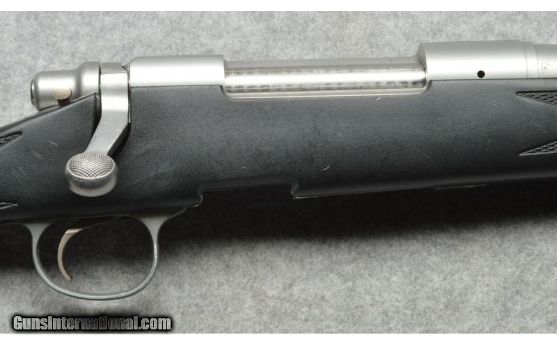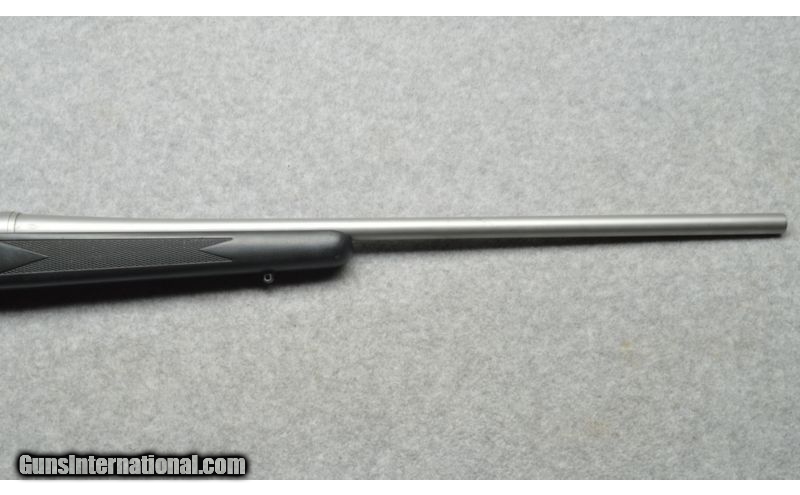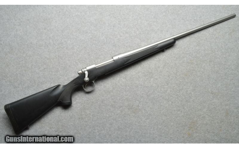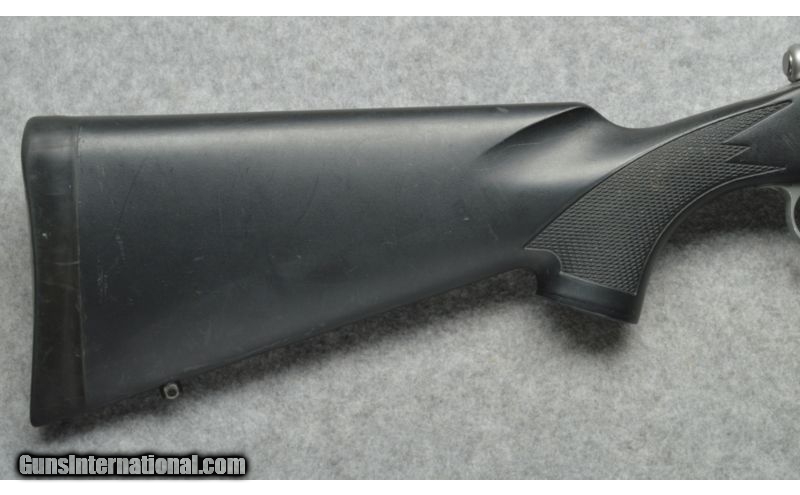 Description: SOLD Manufacturer: Modern manufacture. Caliber Info: .30-06 Springfield Chambers: Bolt action, four round detachable box magazine. Metal Condition: Very good. Wood Condition: Synthetic stock, very good condition. Bore Condition: Excellent bore, sharp lands. Barrels: 24 inch stainless steel barrel. Triggers: Single stage trigger, receiver mounted safety. Stock: Black synthetic, checkered pistol grip stock Stock Dimensions: 13 1/4 inch LOP. Fore End: Black checkered synthetic fore-end. Butt Pad: Black rubber butt pad. Weight: 6 3/4 pounds. Sights: Receiver is drilled and tapped for scope base. Extras: One magazine included. Item Location: Berlin, MA |