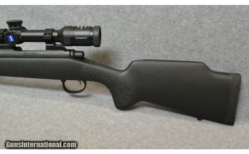 Description: This Remington 700 High Country Rifles Harvester Tactical features a McMillan stock, a Jewel Trigger and a Zeiss Conquest 4.5-14x44mm scope; and is test fired only. SOLD Caliber Info: .308 Winchester Metal Condition: New Wood Condition: New Bore Condition: New Barrels: 22 Inches Triggers: Jewel Custom Stock: McMillan Custom Synthetic Stock Dimensions: LOP: 13 3/4 Inches Butt Pad: Pachmyer Decelerator Recoil Pad Weight: 9 lbs 8 oz Sights: Zeiss Conquest 4.5-14x44mm On Millett Bases & Rings Item Location: League City, TX |