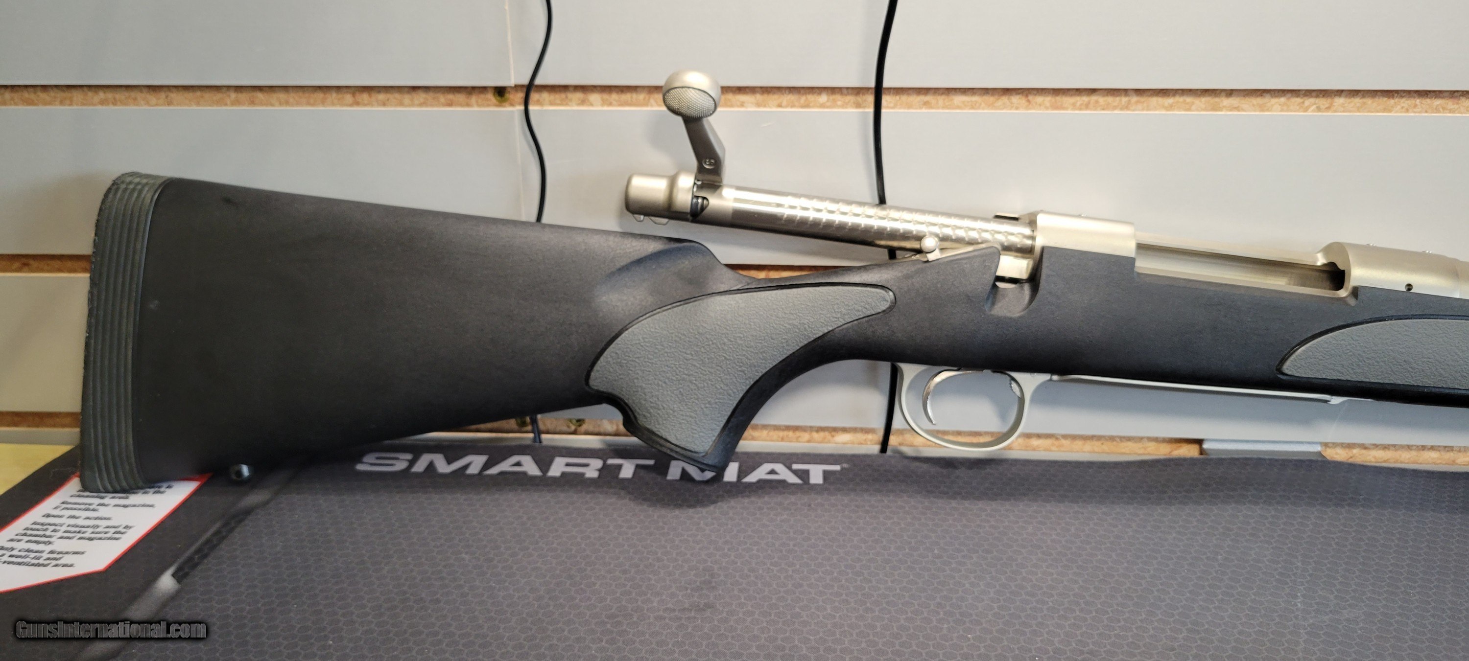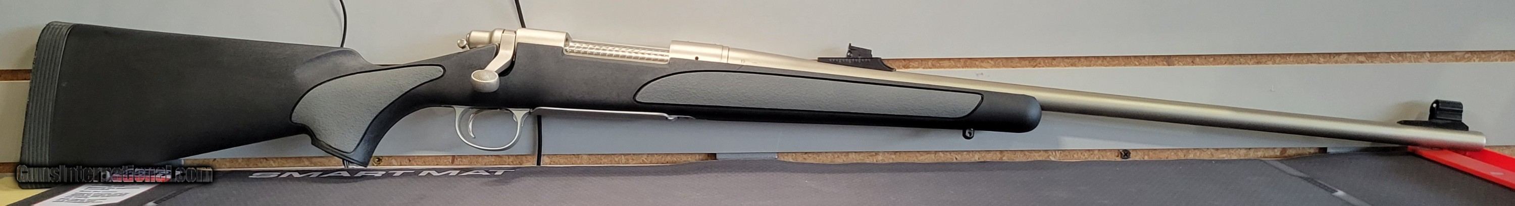 Description: Synthetic Stock Metal Floor Triangle "C" and (REP) Stamp on right side of barrel "RZ" Stamp on left side of barrel. Remington Butt Pad in great condition. Remington Pistol Cap in good condition Engine-Turned "Jeweled" bolt Iron sights Hooded Front Sight Adjustable Rear Sight SOLD Rifle Caliber: .375 H&H Magnum Manufacturer: Remington Model: 700 Serial Number: S6535286 Condition: Great Metal Condition: Great Bore Condition: Great Sights: Iron |