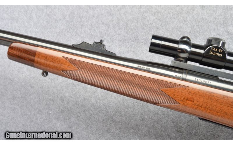 Description: SOLD Caliber Info: 375 H&H Magnum Metal Condition: Excellent Wood Condition: Couple minimal marks Bore Condition: Bright and Sharp Barrels: 24 Inch Stock: Square Knob Pistol Grip with Raised Cheek, Checkered Walnut Stock Dimensions: 13 1/4" LOP Fore End: Rosewood Tip Butt Pad: Decelerator Recoil Pad Sights: Adjustable Rear Sight, Ramped Bead Front, Burris 1 3/4-5X Scope Item Location: Buda, TX |