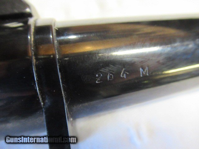 Description: 26" Barrel the only stampings on it are 264 M, Left Handed Rifle with jeweled bolt, Bolt number matches, Great Bore, Comes with Redfield Rings and mount, 98% Blue and Varnish, Has been glass bedded, Buyer pays 40.00 shipping Pa residents add 6% sales tax, Price is for check or money order, Cc add 3% SOLD |