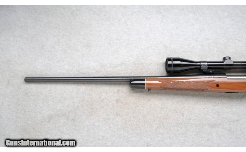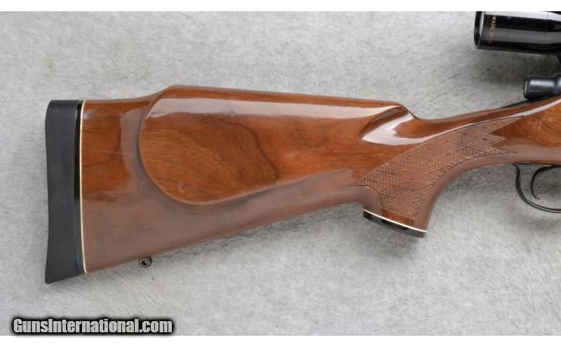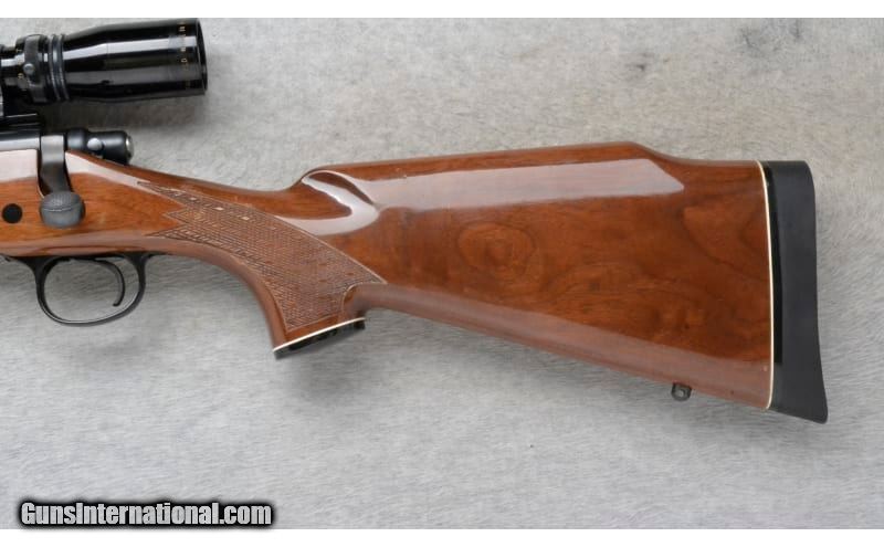 Description: This Remington Model 700LH is a left hand bolt action rifle in 7mm Rem. Mag. Cal. It has a 24 inch barrel. It is outfitted with a Burris 4x-12x Fullfield Scope. The butt stock is a diamond checkered grip walnut pistol grip with a raised cheekpiece and black cap. The forearm is a diamond checkered walnut with a black tip. The bolt is jeweled and the bolt handle is checkered. 7mm Remington Magnum SOLD Chambers: Detachable Magazine. Metal Condition: Excellent. Wood Condition: Good. Has some handling/use marks. Bore Condition: Excellent. Barrels: 24 inch barrel. Stock Dimensions: LOP 13 1/4 inches. Fore End: Diamond checkered grip walnut with a black tip. Butt Pad: Remington black rubber pad. Weight: 9 lb. 0 oz. Sights: Burris 4x-12x Fullfield Scope. Item Location: Richfield, WI |
