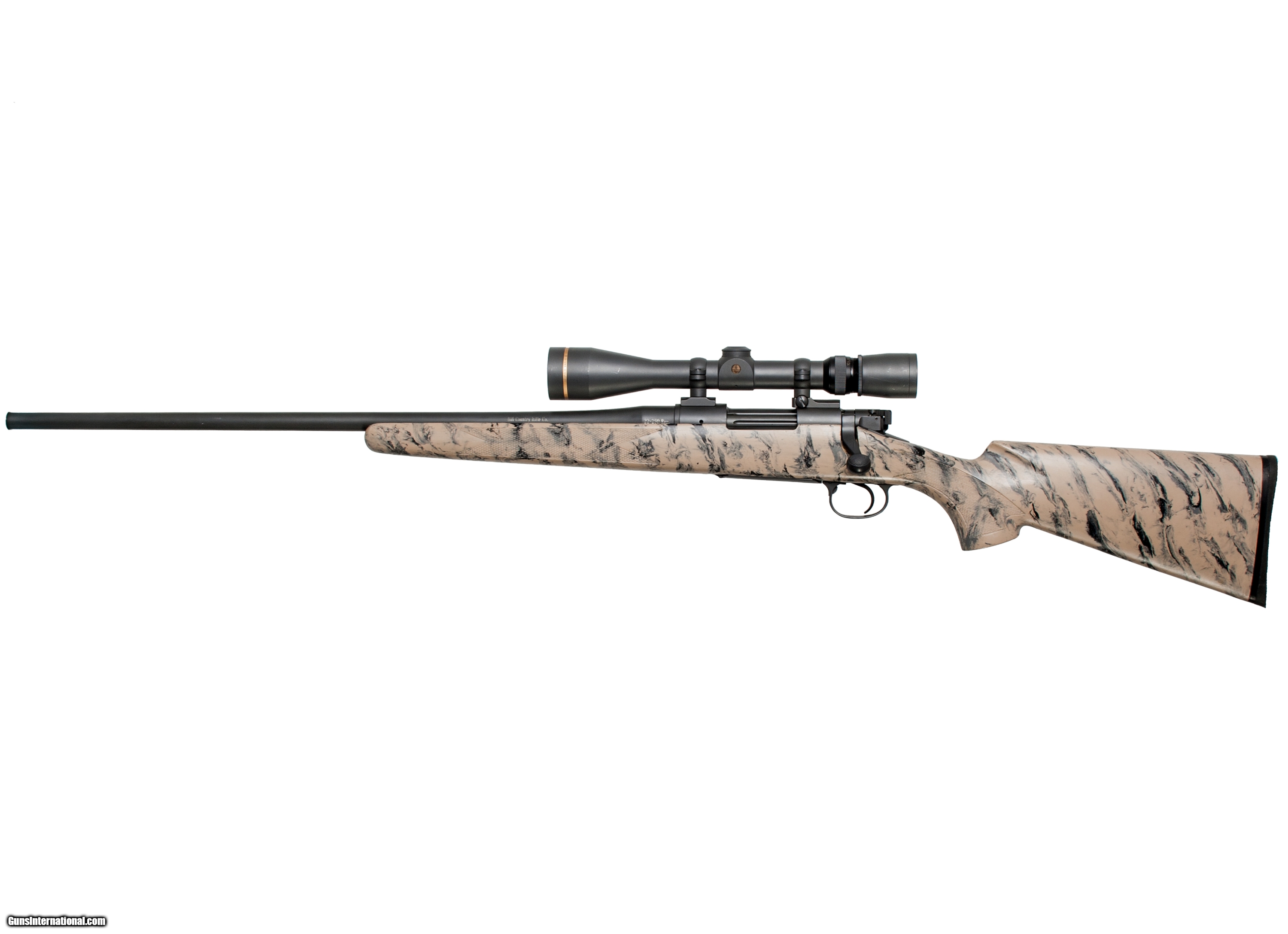 Remington 700 LH by Hill Country Rifle Co. chambered in 22-250 with a Tan/Black/Grey synthetic stock and a Leupold Vari X III 3.5x10 scope. This gun is in excellent condition and is covered by Dury's Lifetime Warranty.