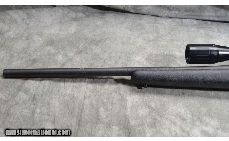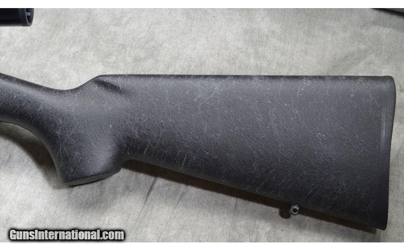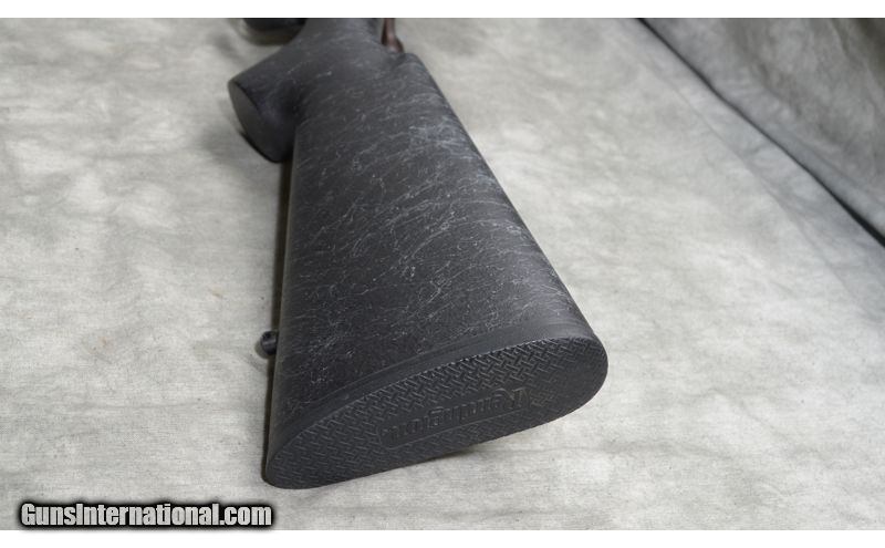 Description: This one features a black composite stock with spiderwebbing, Ceramacote heavy barrel, in .308 win for long range shooting. .308 Winchester SOLD Metal Condition: Very good. Wood Condition: Very good Barrels: 24 Inch Heavy Contour, 0.825 diameter at the muzzle Stock Dimensions: 13 - 3/4 Inch LOP Fore End: Beavertail Butt Pad: Rubber pad Sights: Set up with a Nikon, 4-12X40mm scope Item Location: Rogers |
