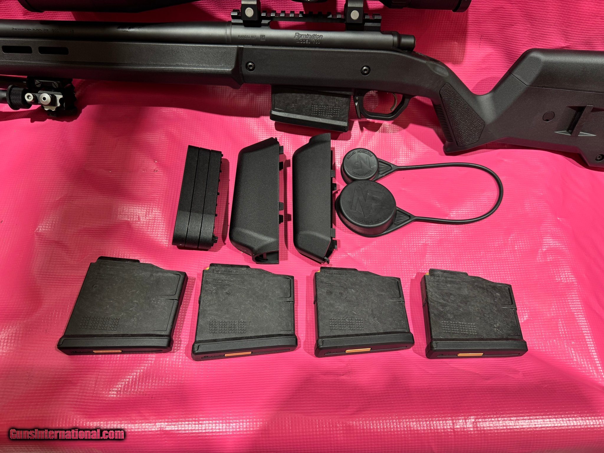 Description: Guns Listing ID: 474617 Used, excellent condition Remington 700 in a Magpul chassis. Chambered in .300 win mag, 24” barrel. Has 5 magazines total. Has a Nightforce SHV 5-20X56 scope mounted. Comes with adjustable cheek plates and extra spacers for butt stock. SOLD Manufacturer: REMINGTON Model: 700 MAGPUL Condition: Used - Non-Certified Barrels: 24 Gauge Info: .300 WIN MAG Finish: black |
