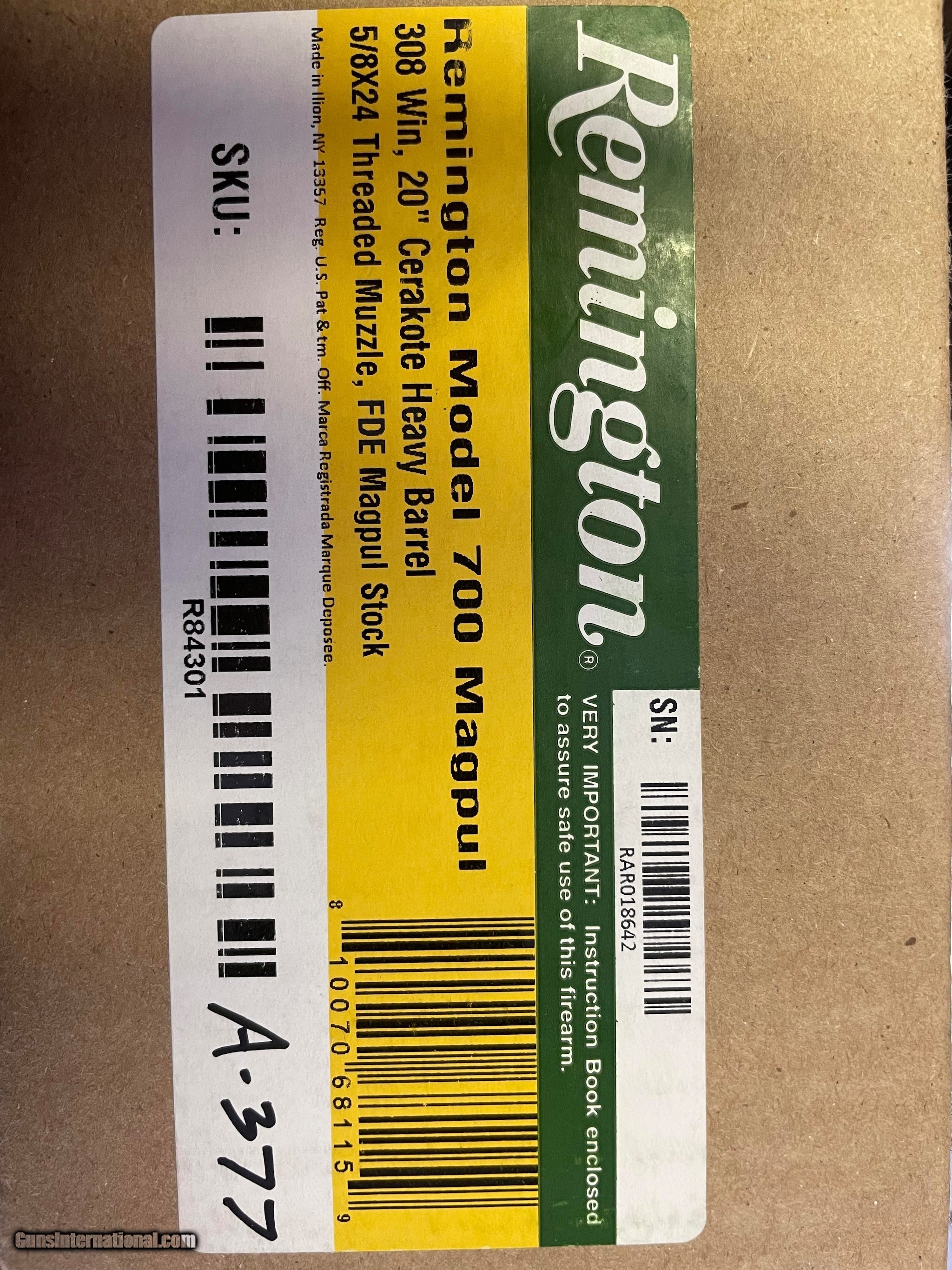 Description: Guns Listing ID: 550769 This listing is for an New unfired Remington Model 700 Magpul edition chambered in .308Win. Comes with original box and paperwork. SOLD Manufacturer: REMINGTON Model: 700 Magpul Caliber Info: .308 WIN Condition: Used - Non-Certified Barrels: 20" barrel Finish: FLAT DARK EARTH |