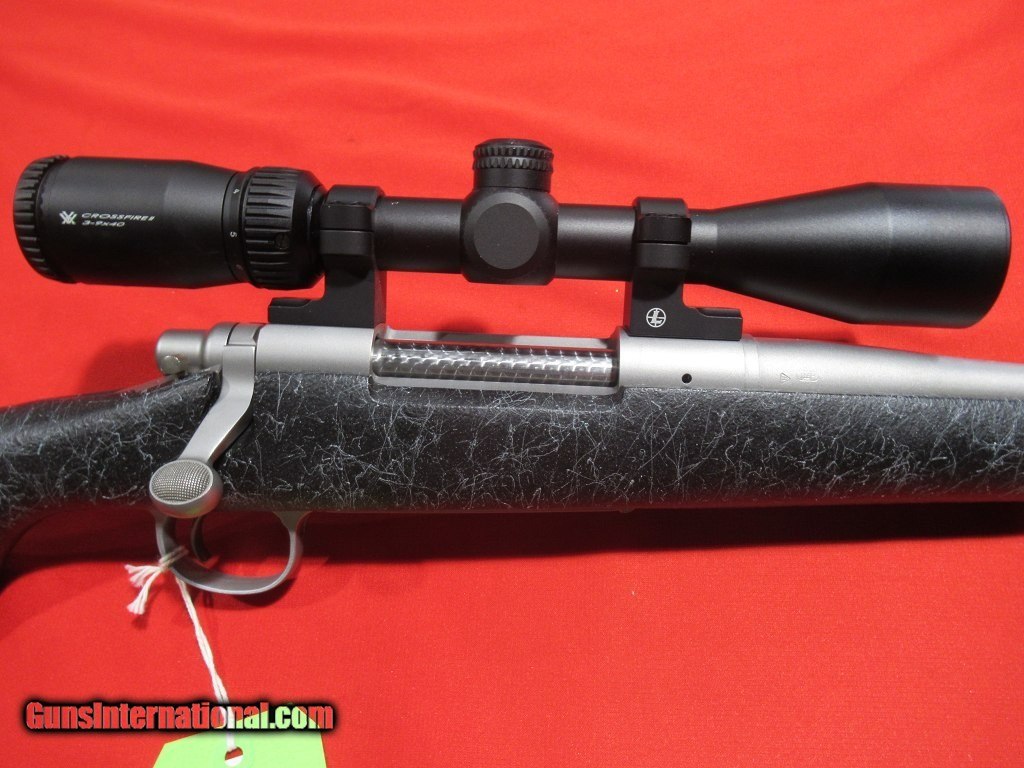 Description: Excellent condition having seen very limited use: Matte stainless action and barrel, Bell & Carlson stock that is black with grey spider webbing, Leupold ring/base mounts, Vortex Crossfire II 3-9x scope. SOLD |