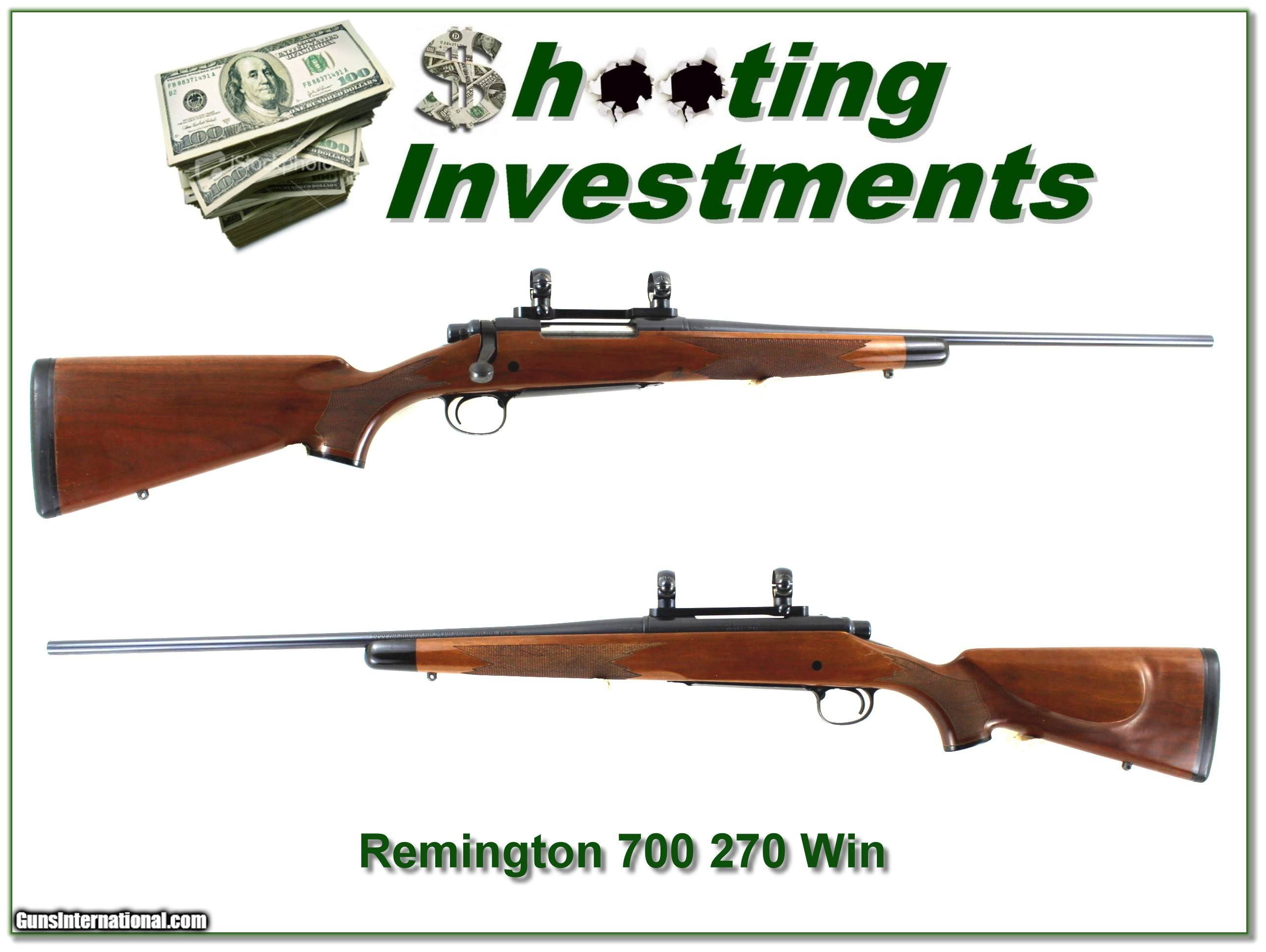 Description: This is a very nice and hard to find Remington 700 Mountain rifle in 270 Winchester. This one was made in 1991. These are lightweight guns made with 22in pencil barrels. This one has a few minor marks from some use and will make a classic lightweight hunting gun in a hard to find rifle. It is a real Shooting Investment for sure! Shipping and insurance is $49. Please email me with any questions or larger pictures. (Consign your quality firearms with Shooting Investments for only 12%! Let me know if you have any you would like to sell!) 23-0524 Payment: Payment is by Money Order, Cashier’s Check or Personal Check. I can now also accept Credit Cards (MasterCard, Visa, Discover & American Express) with a 3% convenience fee. Shipping: The shipping charge will be listed in each description. It is $49 for most firearms. Some heavy guns or those insured for over $2000 will be higher. Shipments to Alaska and Hawaii are higher because air shipment is required. Most firearms are shipped on Tuesday and Thursday and usually in 5 days of receipt of payment. We package all shipments carefully and insure them. Optics are shipped Priority Mail and most other non-firearm shipments are shipped First Class. Returns: Our return policy is simple. If for any reason you are not pleased with your purchase, you may return your item for a full refund of purchase price. Ammunition cannot be returned. It is important to us that you are happy. Guns cannot be fired or dissembled before returning them and they must be returned in the same condition as received. Notification of a return must occur within 3 days of receipt at your dealer. Shipping, convenience and dealer fees are not refundable and are the responsibility of the buyer. Lay-a-way: If needed, we offer a 60 day lay-a-way option on most firearms. It is 1/3 now, 1/3 in 30 days and 1/3 in 60 days. Lay-a-way firearm sales are final and cannot be returned. If a lay-a-way is not completed the first payment cannot be refunded. Consigning your firearms with Shooting Investments: We will help you get top dollar for your firearms. While most local guns shops charge 20% or more, our fee is only 12% with a minimum of $75. At your local gun shop it might take months to sell. Selling on-line provides instant access to thousands of interested buyers. You won’t find any other on-line dealer willing to sell your firearms for only 12% or listing every gun on 3 separate s. Selling through an House typically costs the seller 15% and the buyer an addition 15% (so 30%) and you have to wait several months to sell and longer to receive funds. If properly priced, we will sell your firearms within a few weeks. Send us an email or give us a call and we’ll explain how easy it is for you to get top dollar. Trading: Trading for us is really just buying your gun to re-sell. If you have a gun you want to trade, please email a picture and we will let you know what we can give for it. You will always get more if we sell it for you on consignment. SOLD |