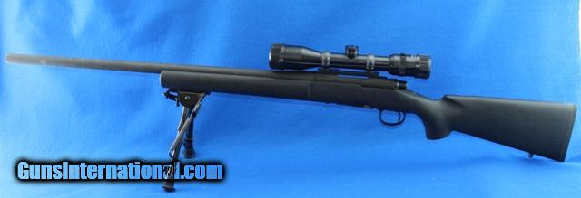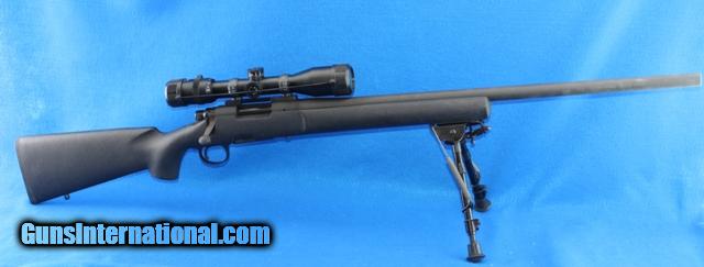 Description: Remington 700 Police DM., .308 Win., 26" barrel, tactical bolt handle, black synthetic stock with pistol grip, detachable magazine, Harris bipod, Leapers 3-9 x 42 scope on one piece mount. Firearm is in very good condition with clean bore and strong rifling. ADD 3% FOR CREDIT CARDS shipping $25.00 SOLD |