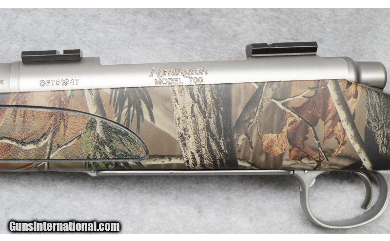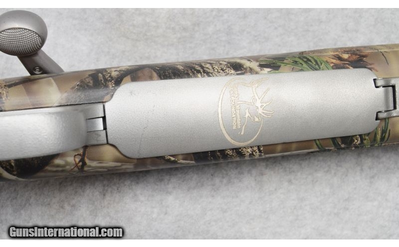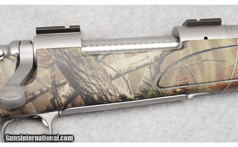Description: SOLD Caliber Info: 7mm RUM Metal Condition: Very good with minor scratches. Wood Condition: Excellent. Bore Condition: Bright shiny with crisp rifling. Barrels: 26 Stock: Realtree camo synthetic. Fore End: Realtree camo synthetic. Butt Pad: Rubber recoil pad. Weight: 7-lbs., 3-ozs. Sights: Includes Warne bases. Item Location: Hamburg, PA |