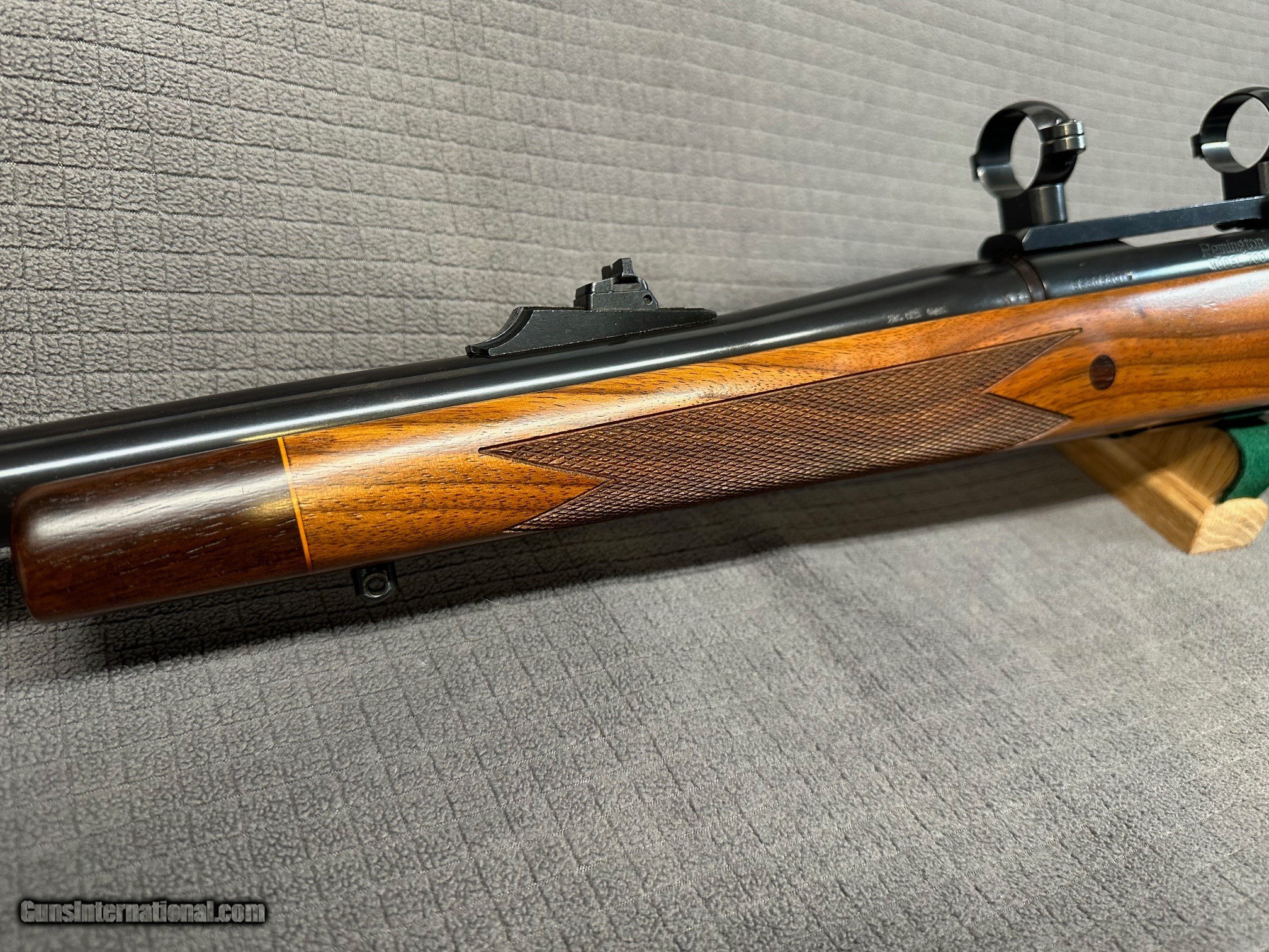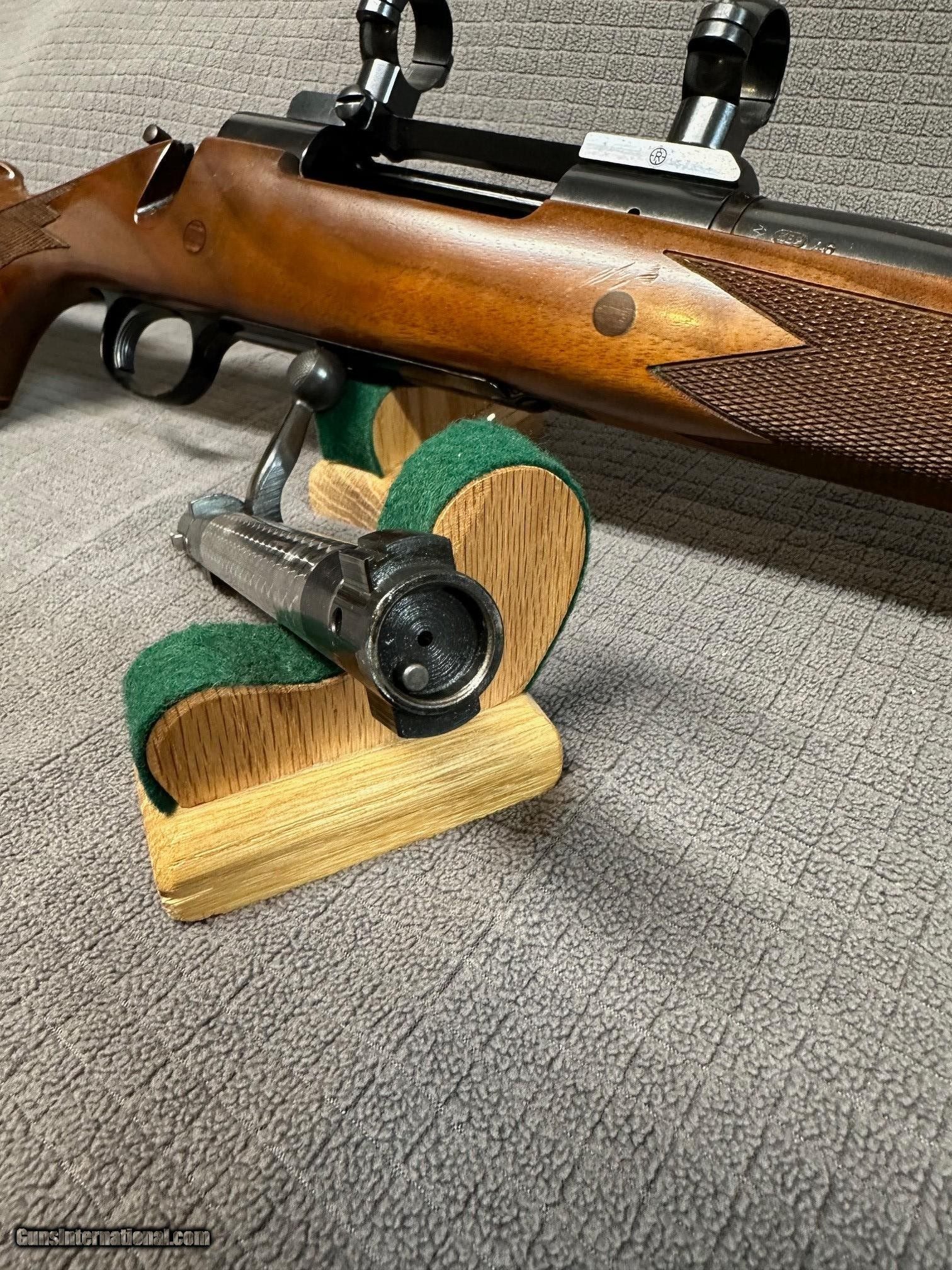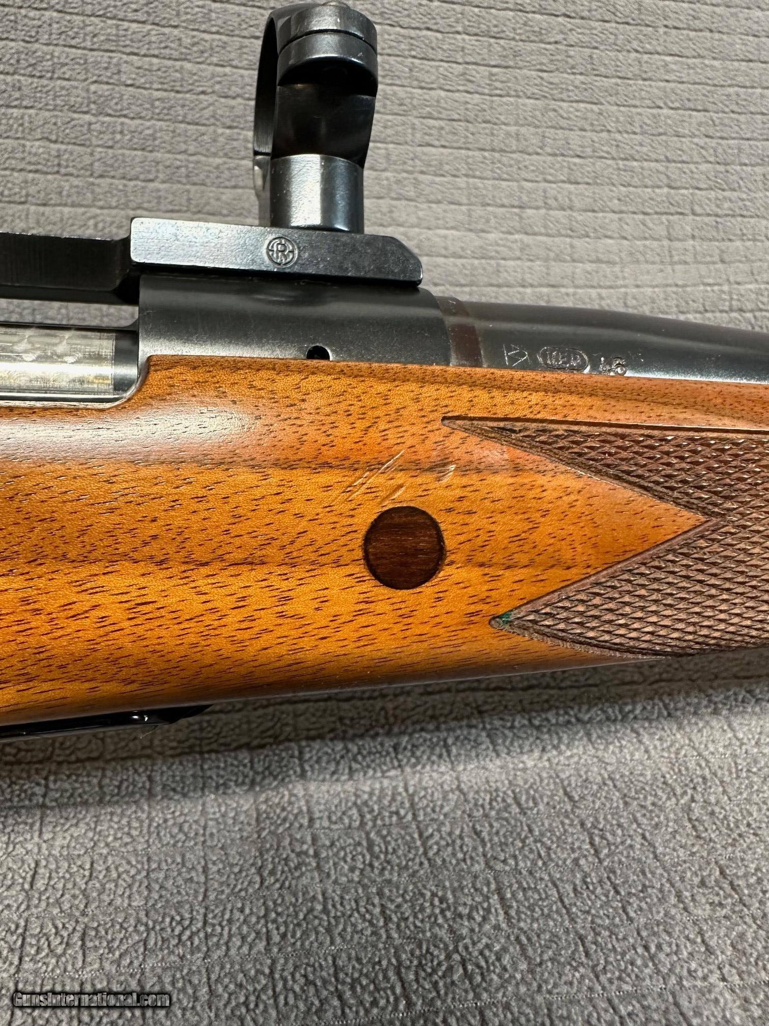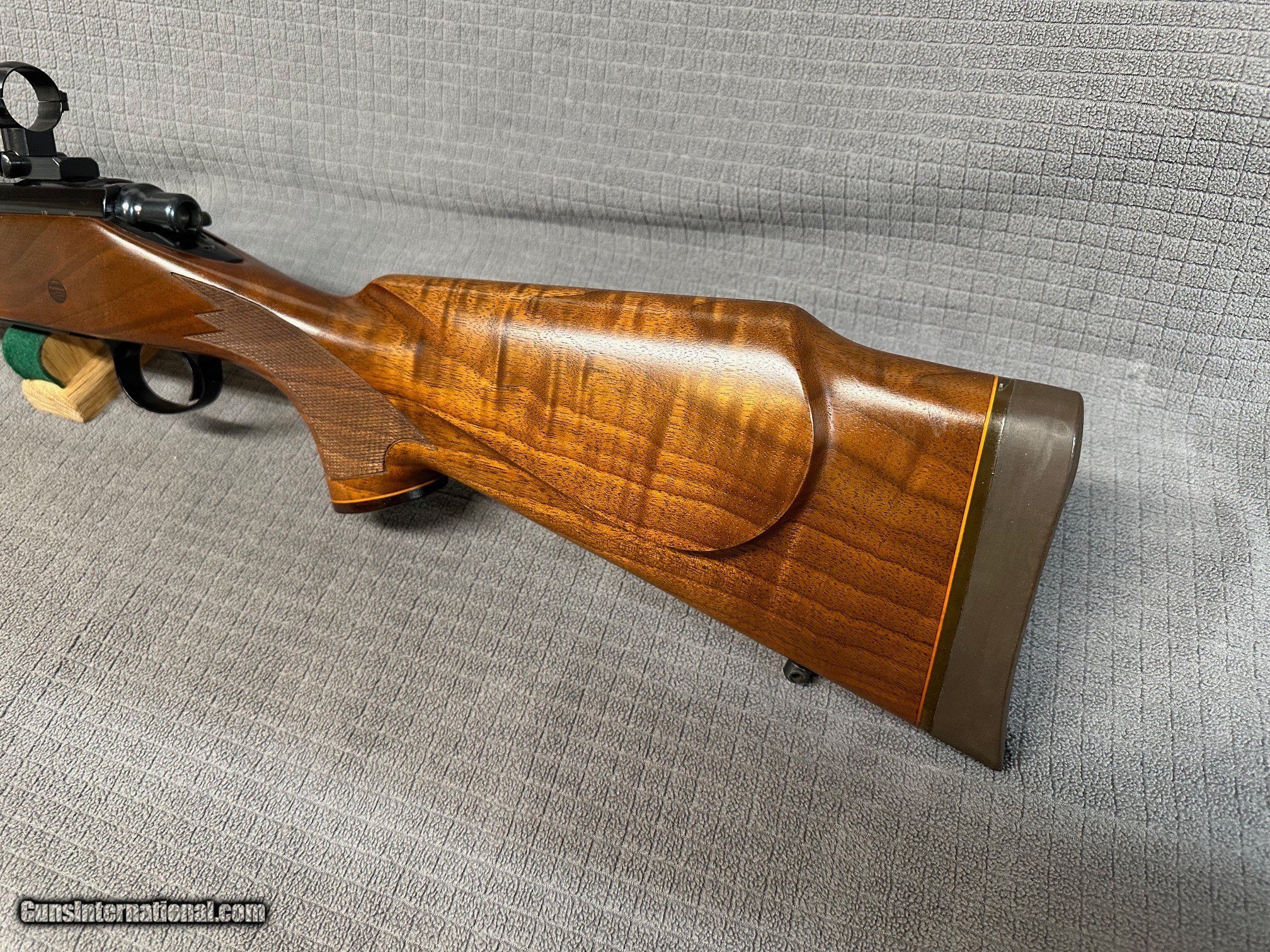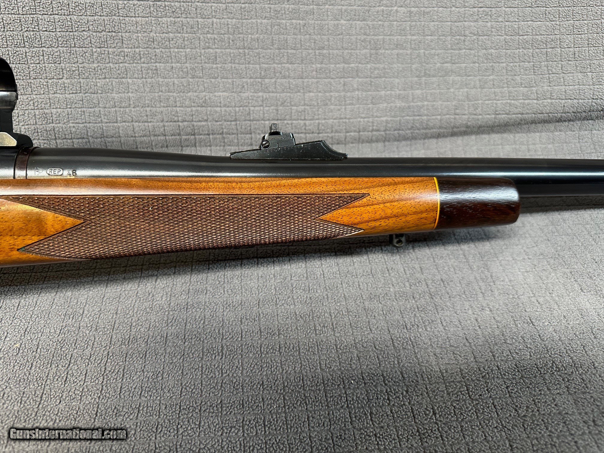 Description: BEAUTIFUL 1981 mfg.(Custom Shop) 700 Safari Grade chambered in 375 H&H mag. 100% original. I believe this rifle is UNFIRED as bore, bolt face, feed ramp and action show no signs of it. Blue is 100%. Gorgeous Oil finished Monte Carlo stock is 99% due to 2-3 minor handling marks(see pics). Rosewood Caps and reinforcment pin plugs. Nice fine, sharp, cut checkering. 24" medium weight barrel with factory sights. Leupold base and rings included as shown. $75.00 shipping(lower 48) to your FFL. NO CA Sales. Thanks for looking. SOLD |