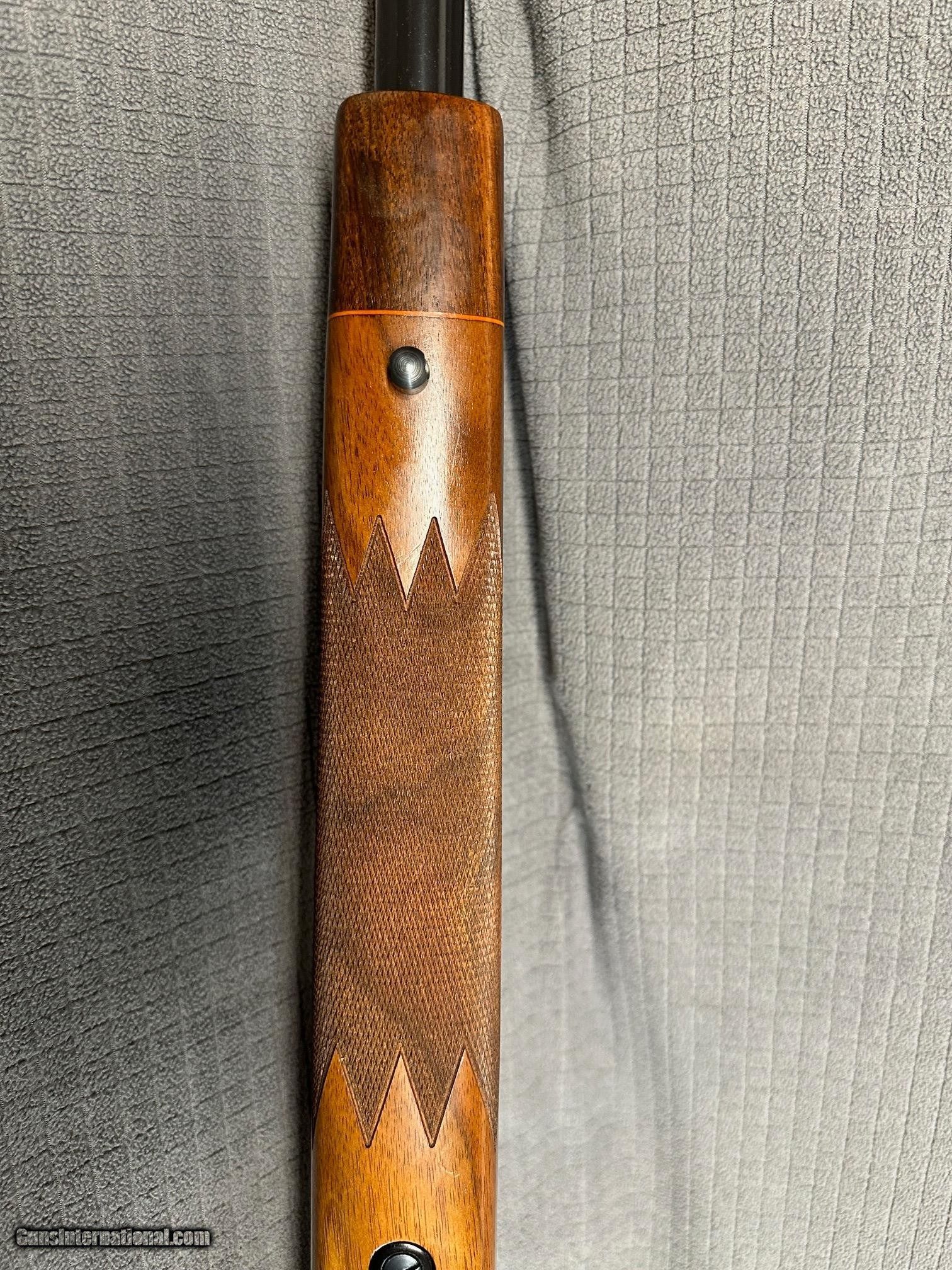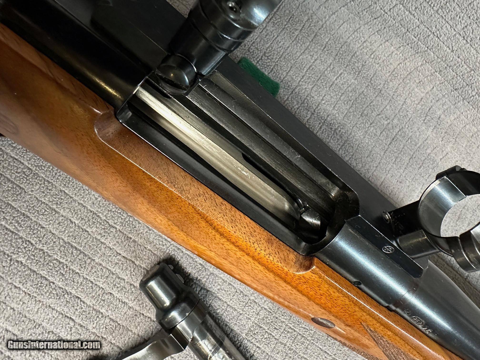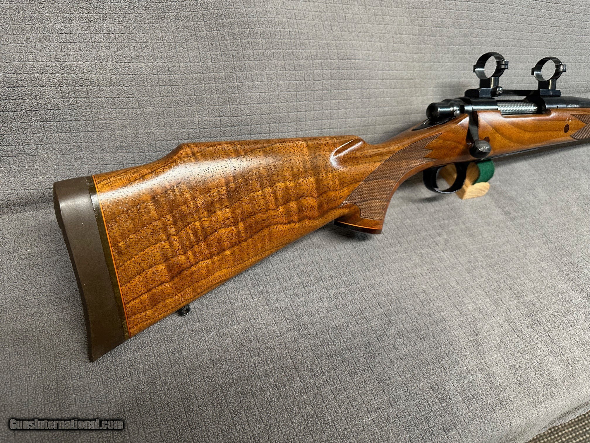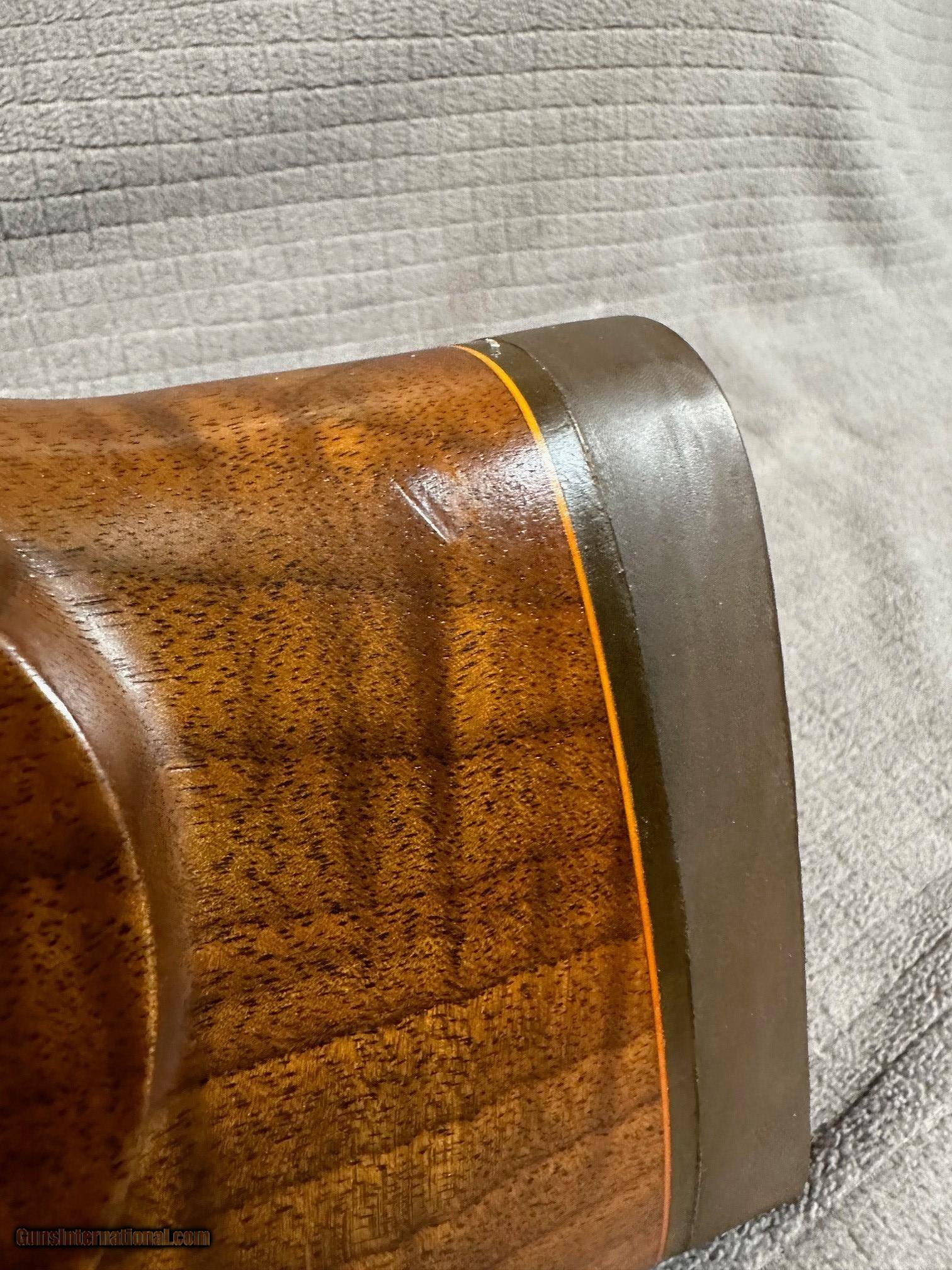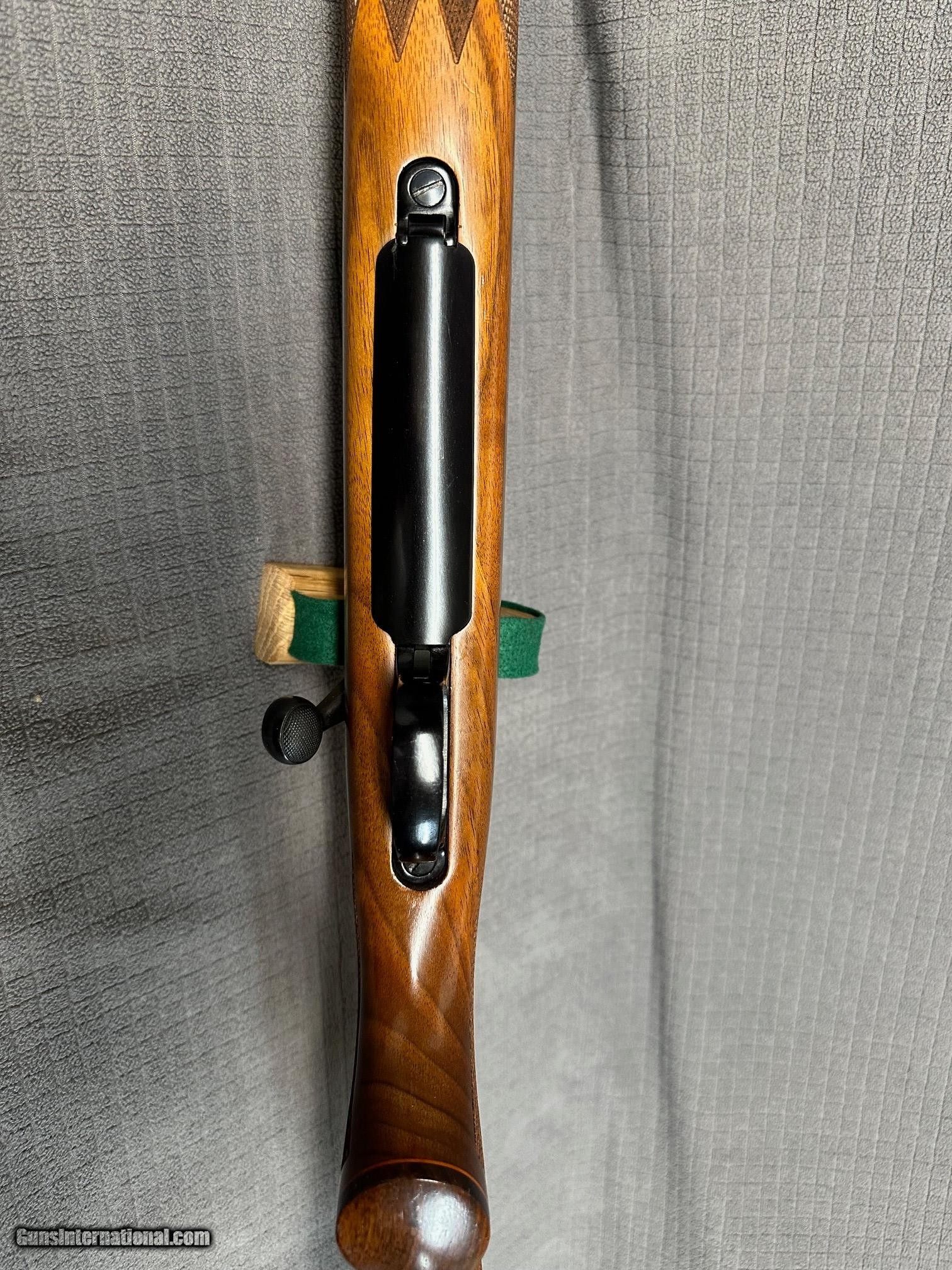Description: BEAUTIFUL 1981 mfg.(Custom Shop) 700 Safari Grade chambered in 375 H&H mag. 100% original. I believe this rifle is UNFIRED as bore, bolt face, feed ramp and action show no signs of it. Blue is 100%. Gorgeous Oil finished Monte Carlo stock is 99% due to 2-3 minor handling marks(see pics). Rosewood Caps and reinforcment pin plugs. Nice fine, sharp, cut checkering. 24" medium weight barrel with factory sights. Leupold base and rings included as shown. $75.00 shipping(lower 48) to your FFL. NO CA Sales. Thanks for looking. SOLD |
