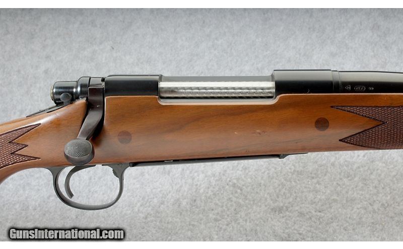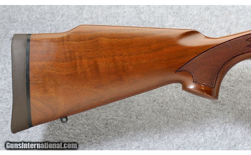 Description: Built on the proven Remington Model 700, the Custom Shop Safari Grade Bolt-Action Rifle has all the features you need for dangerous game hunting. At the heart of the Safari Grade is the famous Model 700 action that encloses the cartridge head in 3 rings of steel: the recessed bolt face, the chamber end of the barrel, and the front receiver ring. This design provides inherent strength, while holding the cartridge in precise alignment with the bore for exceptional accuracy. The 700 Safari Grade comes with a walnut Monet Carlo stock, and exterior metalwork finished in a high polish blued finish. The 2-position safety at the rear of the action is quick to operate with the thumb, and can also be gripped with the forefinger and thumb and moved extra quietly to the fire position. The bolt knob has 2-panel checkering for a non-slip hold while cycling the action. The Remington Model 700 Safari Grade Bolt-Action Rifle has a hinged floorplate for safe and easy unloading of the magazine. Manufactured 1991. .458 Winchester Magnum SOLD Metal Condition: Excellent with a few nicks in the finish on the bottom metal Wood Condition: Very good with some dents and scratches Bore Condition: Excellent Barrels: 24 inch barrel Triggers: Adjustable trigger Stock Dimensions: 13 3/8 inch LOP Fore End: Checkered walnut with contrasting wood cap Butt Pad: Remington pad Weight: 8 lbs. 10 oz. Sights: Adjustable rear sight with hooded bead front. Drilled and tapped for scope mounting Item Location: Lehi, UT |