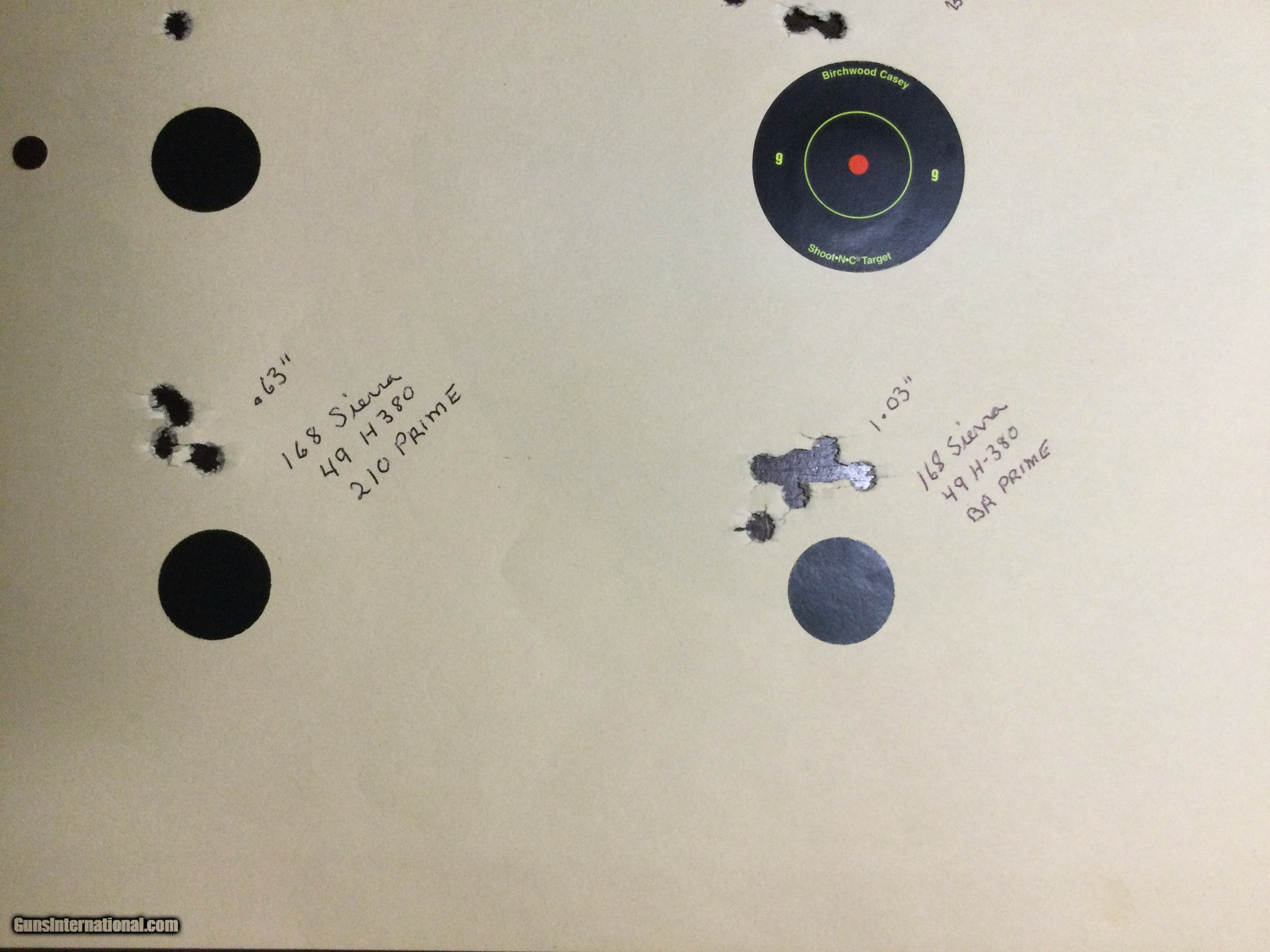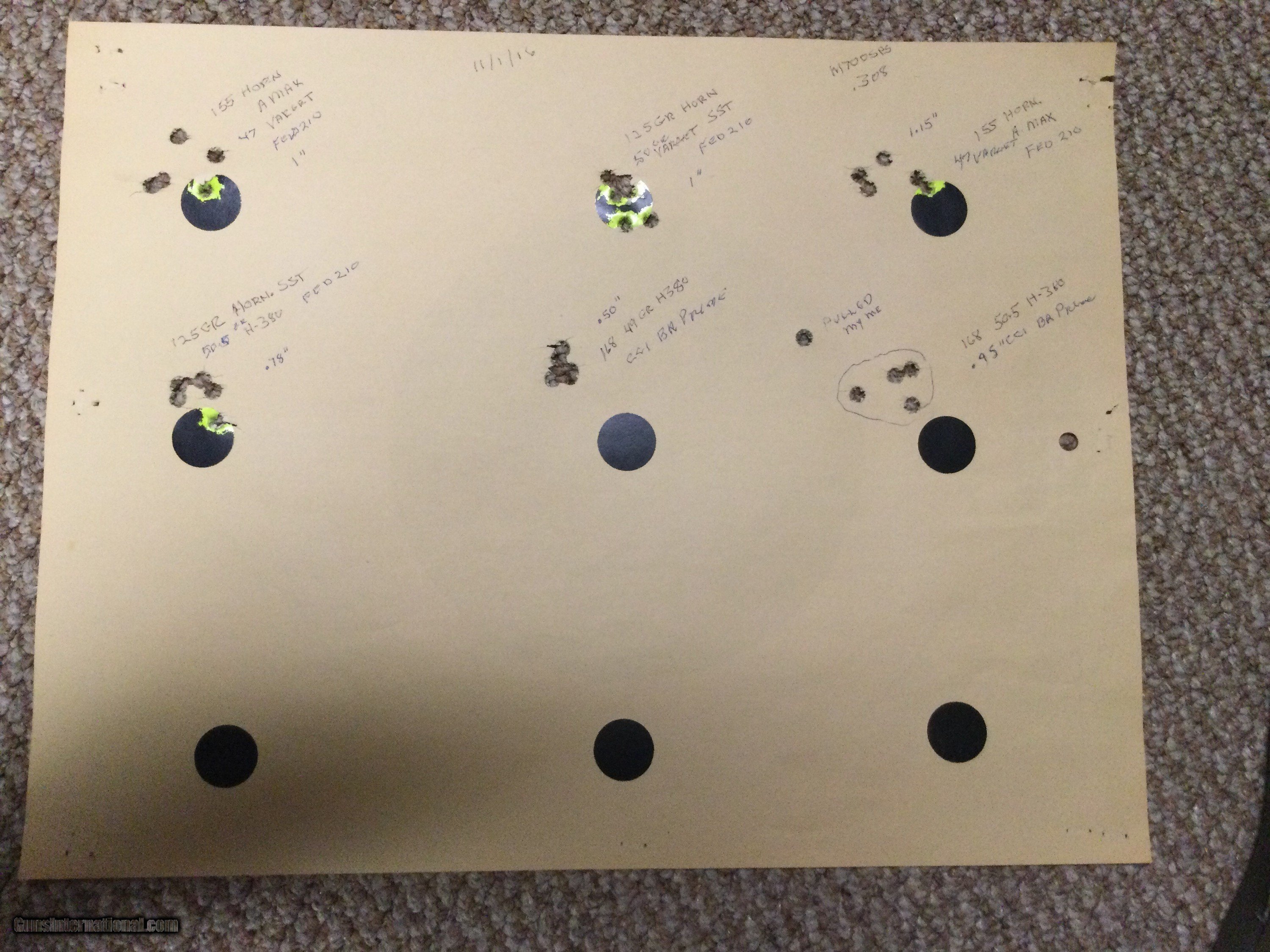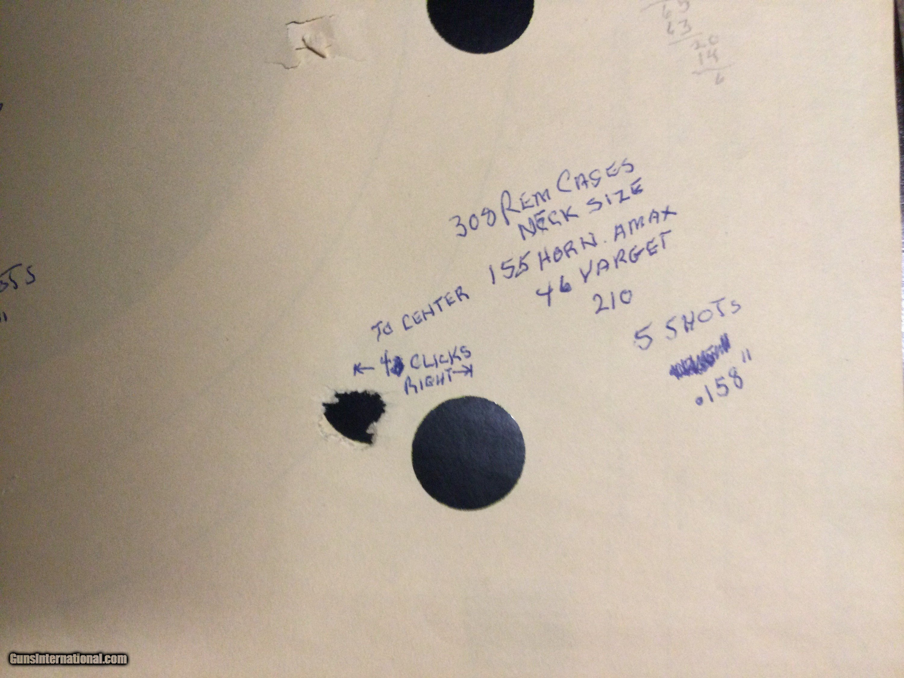 Description: Remington 700 SPS heavy barrel varmint, cal. 308 Win. 26" barrel w/1-12 twist. Equips w/Timney trigger 2.5 lbs. This rifle has extreme accuracy with many various load combinations. See various targets that are pictured. No dings, scratches or blue ware. Original box included. All firearms must ship to FFL dealer. Shipping to lower 48 only. Due to extreamly poor cell service, please call my land .line at 201 445 1530 with an questions. Leave message & I will return your call ASAP. Note: the number of rounds fired by this rifle are 310. SOLD |