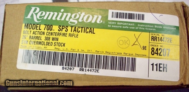 Description: This NEW IN THE BOX Remington 700 SPS TACTICAL is a .308 Cal. with 20 " HEAVY contour black oxide blasted finish tactical style barrel. Dual piller Hogue overmold (soft touch) stock with wider forend. NEW. $649.00 rmgrigolettohyahoo &nb SOLD |