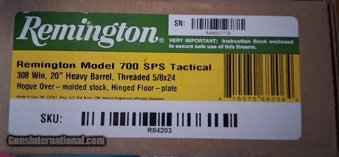 Description: Remington 700 SPS tactical .308 20 in heavy barrrel, Hogue stock, threaded barrel original box, manual , less than 20 rounds, includes Leupold Rings and Base, not a mark on it. Its is a tack drirver. I bought it new. Rifle Caliber: .308 Winchester Price: $900.00 Contact Seller |