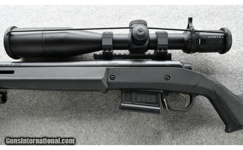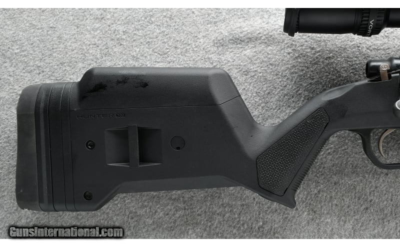 Description: The Remington 700 SPS is a precision rifle capable of legendary accuracy. This one was made in 2008. .308 Winchester SOLD Chambers: .308 Winchester in a ten round detachable magazine bolt action rifle Metal Condition: "Very good, light visible wear on the bolt handle Wood Condition: Magpul Hunter 700 stock is in like new condition Bore Condition: Bright and sharp Barrels: 26" Heavy Contour 5R rifling 1:10 twist rate Triggers: Single Stock Dimensions: Variable with supplied spacers Fore End: Magpul flat-bottom vented with bipod Butt Pad: Magpul rubber Weight: 13 lbs. Sights: "No sights, fitted with a Vortex Strike Eagle 5-25X56 Scope with lens covers Item Location: Grand Junction, CO |