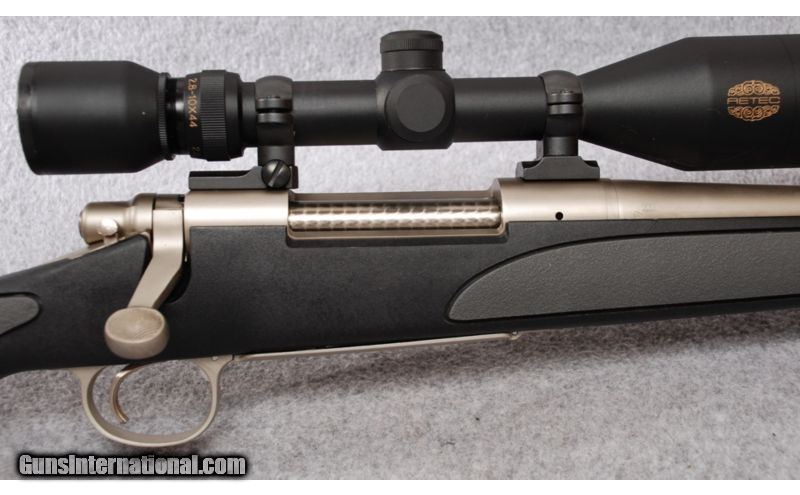 Description: SOLD Caliber Info: 7mm Remington Ultra Magnum Metal Condition: Very minor handling marks Bore Condition: Bright with sharp lands Barrels: 26" Stainless Stock: Synthetic with cheekpiece Stock Dimensions: 13 1/4" LOP Fore End: Synthetic Butt Pad: Rubber Weight: 8 Lbs. 10 Oz. Sights: Simmons Aetec 2.8-10X44 Scope Extras: Scope, bases and rings Item Location: Billings, MT |