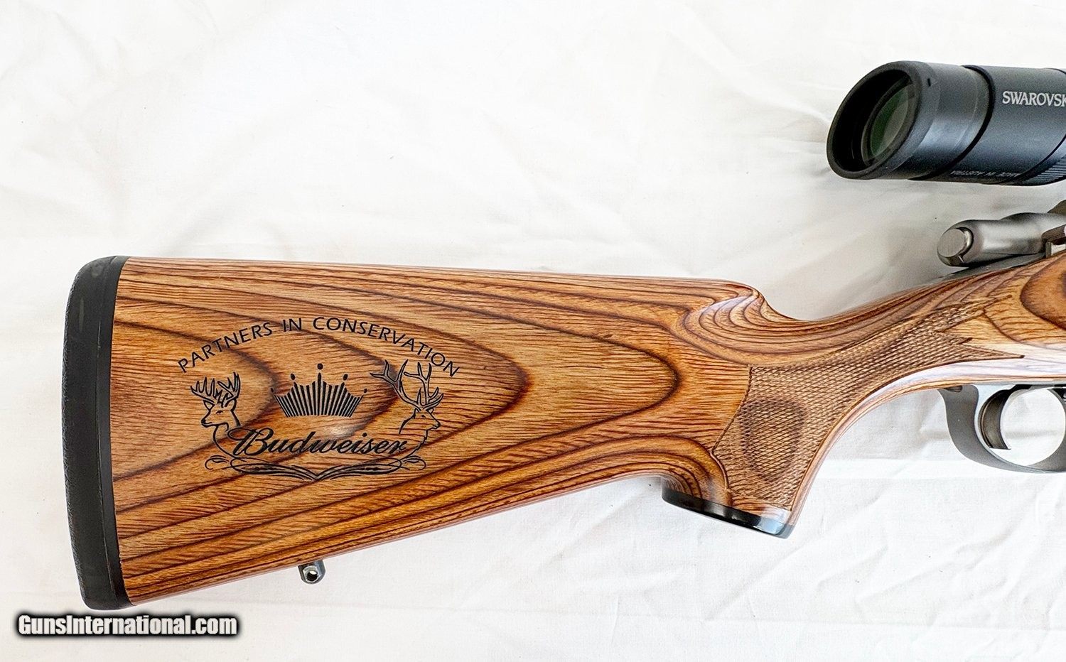 Description: Guns Listing ID: 573628 Remington 700 Stainless Laminate chambered in .30-06. This rifle was produced in partnership with the Anheuser-Busch company. The stock is laser engraved on right rear butt designating a partnership in conservation with Remington Arms Company. The floorplate is also engraved. The rifle is in excellent condition and has been fired very little. Rifle currently wears a Swarovski Habicht variable power 4-12x50 scope. Rifle is impeccable save one small bit of safe rash in stock above trigger guard on left side – see photo. SOLD Manufacturer: REMINGTON Model: 700 Stainless Laminate Budweiser Caliber Info: .30-06 SPRG Condition: Used - Non-Certified Barrels: 24" BARREL Action: BOLT ACTION Finish: BRUSHED STAINLESS |