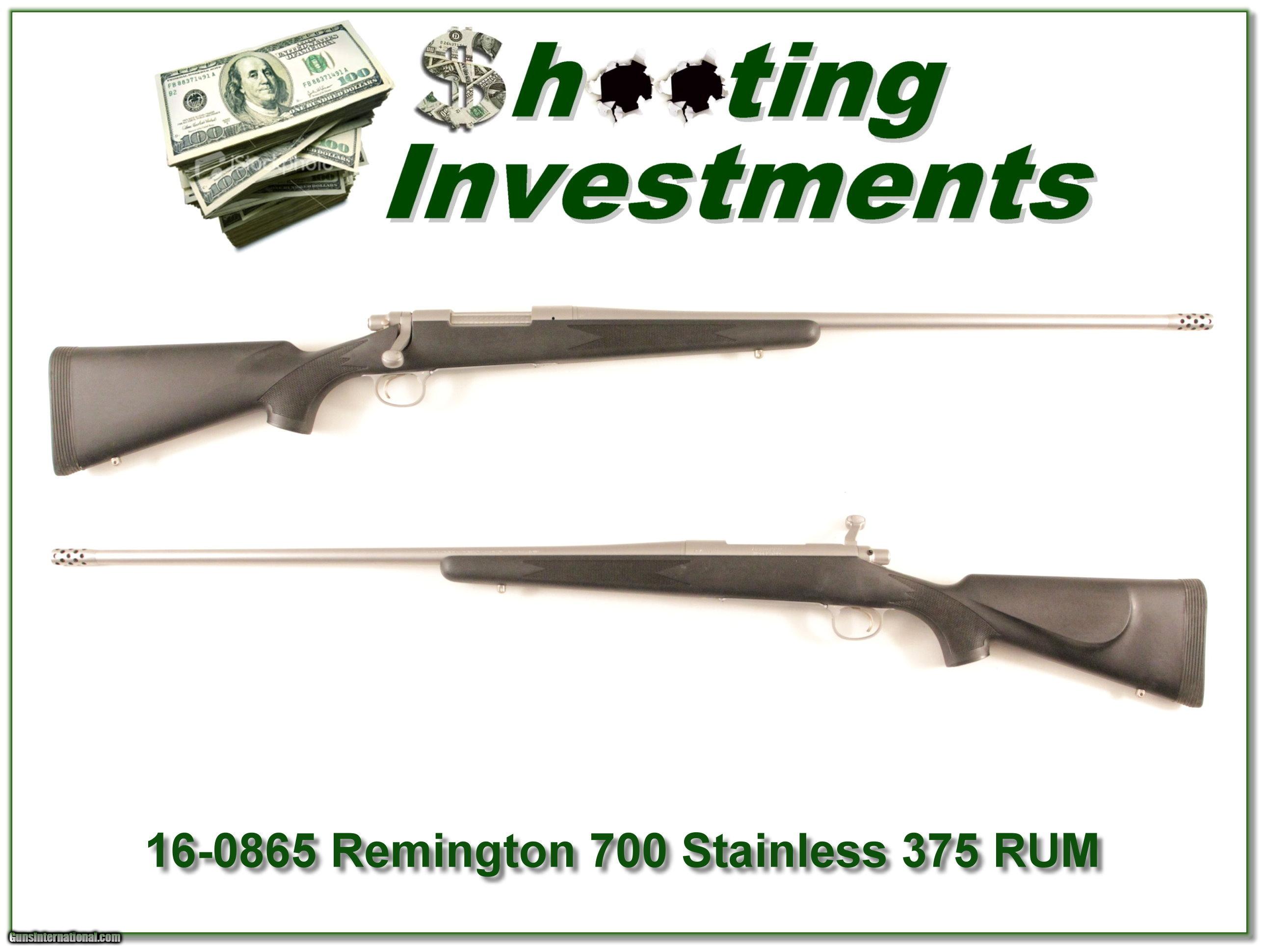 Description: This is a hard to find and no longer made Remington 700 in the hard hitting 375 RUM! This one has a 28in barrel including the muzzle break. With it recoil is more like a 300. I am selling this one on consignment and as such lay-a-way can’t be used. It does of course have the standard 3 day inspection. Shipping and insurance is $35 or $15 more if you want it shipped in a new Plano hard case. Please email me with any questions or larger pictures. (I now consign quality firearms only 10%! Let me know if you have any you would like to sell!) [16-0865] Payment: Payment is by Money Order, Cashiers Check or Personal Check. I can now also accept MasterCard and Visa with a 3% convenience fee. PayPal can be used for some items but never firearms. Please let us know if you would like to pay via PayPal. Shipping: The shipping charge will be listed in each description. It is $35 for most guns. Some heavy guns or those insured for over $2000 will be higher. Shipments to Alaska and Hawaii are higher because air shipment is required. Most firearms are shipped within 5 days of receipt of payment. We prefer shipping at the beginning of the week to avoid firearms in transit over weekends. We package all shipments carefully and insure them for the full purchase price, rounded up to the next $100. In the unlikely event that damage occurs, it is important that you save all packaging material for the claims process. Optics are shipped Priority Mail and most other non-firearm shipments are shipped First Class. Returns: Our return policy is simple. If for any reason you are not pleased with your purchase, you may return your item for a refund. The only exception is ammunition, it cannot be returned. It is important to us that you are happy. Guns cannot be fired or dissembled before returning them and must be returned in the same condition as received. Notification of a return must occur with-in 3 days of receipt at your dealer. Shipping, convenience and dealer fees are not refundable and are the responsibility of the buyer. Lay-a-way: If needed, we offer a 60 day lay-a-way option on most firearms. It is 1/3 now, 1/3 in 30 days and 1/3 in 60 days. Lay-a-way firearm sales are final. Consigning your firearms with Shooting Investments: We will help you get top dollar for your firearms. While most local guns shops charge 20% or more, our fee is only 10% with a minimum of $50. At your local gun shop it might take months to sell. Selling on-line provides instant access to thousands of interested buyers. You won’t find any other on-line dealer willing to sell your firearms for only 10% or listing every gun on 4 separate s. Selling through an House typically costs the seller 15% and the buyer an addition 15% (so 30%) and you have to wait several months to sell and longer to receive funds. If properly priced, we will sell your firearms in a week or two. Send us an email or give us a call and we’ll explain how easy it is for you to get top dollar. Trading: We collect guns and usually just trade for guns we want to add to our collections. We often sell guns for others wanting to purchase one of ours. We find this the most fair to both of us. Our Commission is only 10% and we hold the gun you want until yours sells. Please contact us if you want to sell one of yours to buy one of ours. Help for California Buyers: We are happy to ship to California. It is the buyer’s responsibility to make sure any item you buy is legal in your state. We are also happy to help with your purchase of a firearm from someone other than us. If you see a gun you would like to buy but the seller can’t or won’t ship to California we can help. You buy the gun and have it shipped to us. We’ll then ship it to your California dealer. The cost for this service is only $30 + shipping. Let me know if we can help! SOLD |